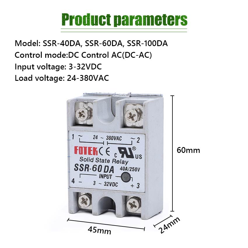 Solid State Relay SSR-40/60/100DA DC Control AC 480V 380V 220V Relay Power Supply Regulator Control