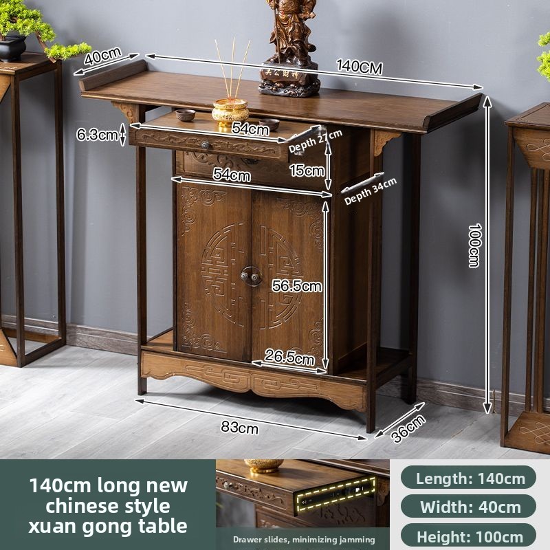 Solid Wood Altar Buddha Shrine Household Buddha Table Simple Incense Burner Table Altar Cabinet Chinese Shrine Altar God of Wealth Worship Table a Long Narrow Table