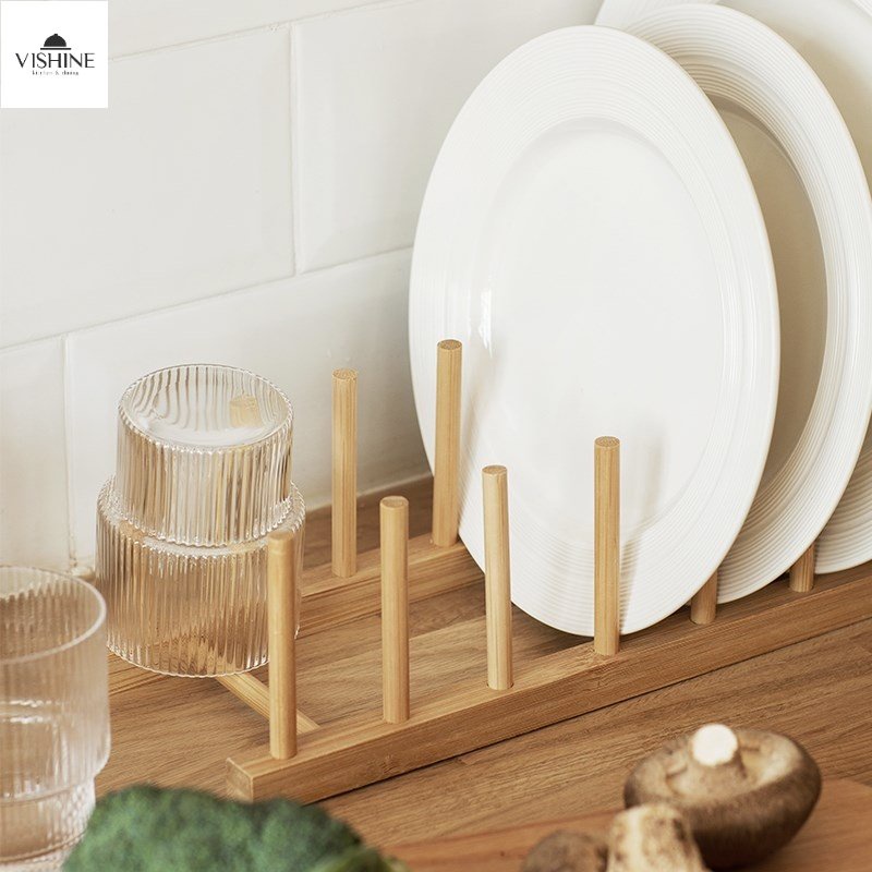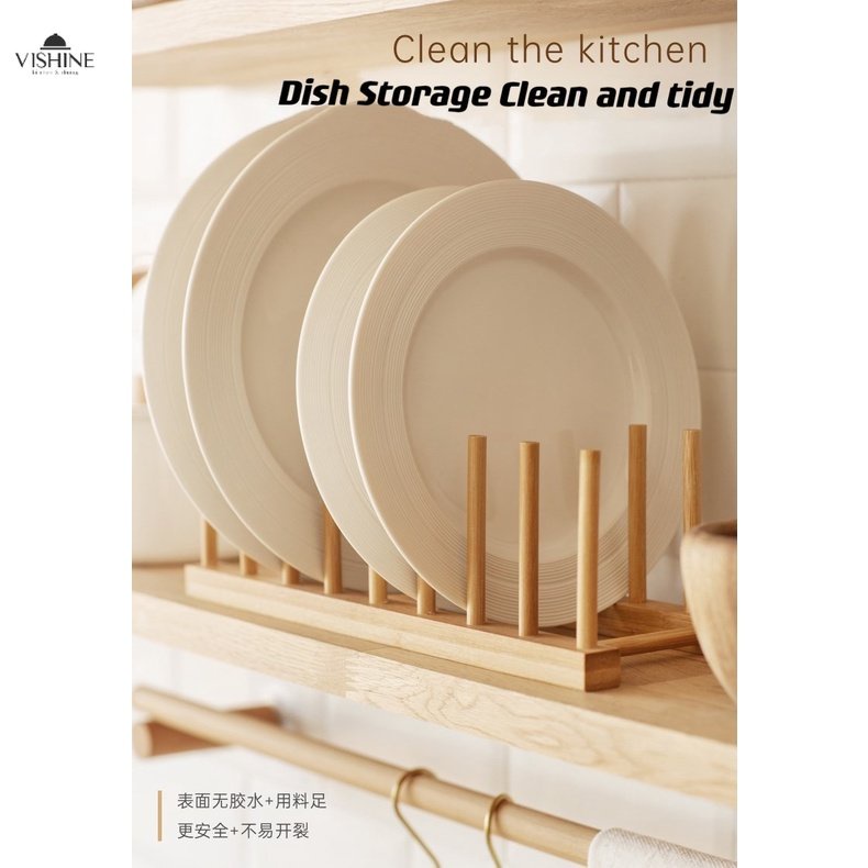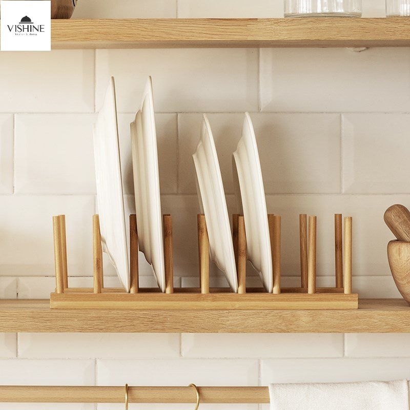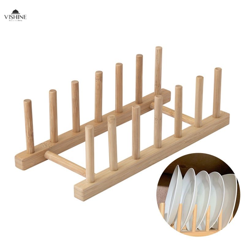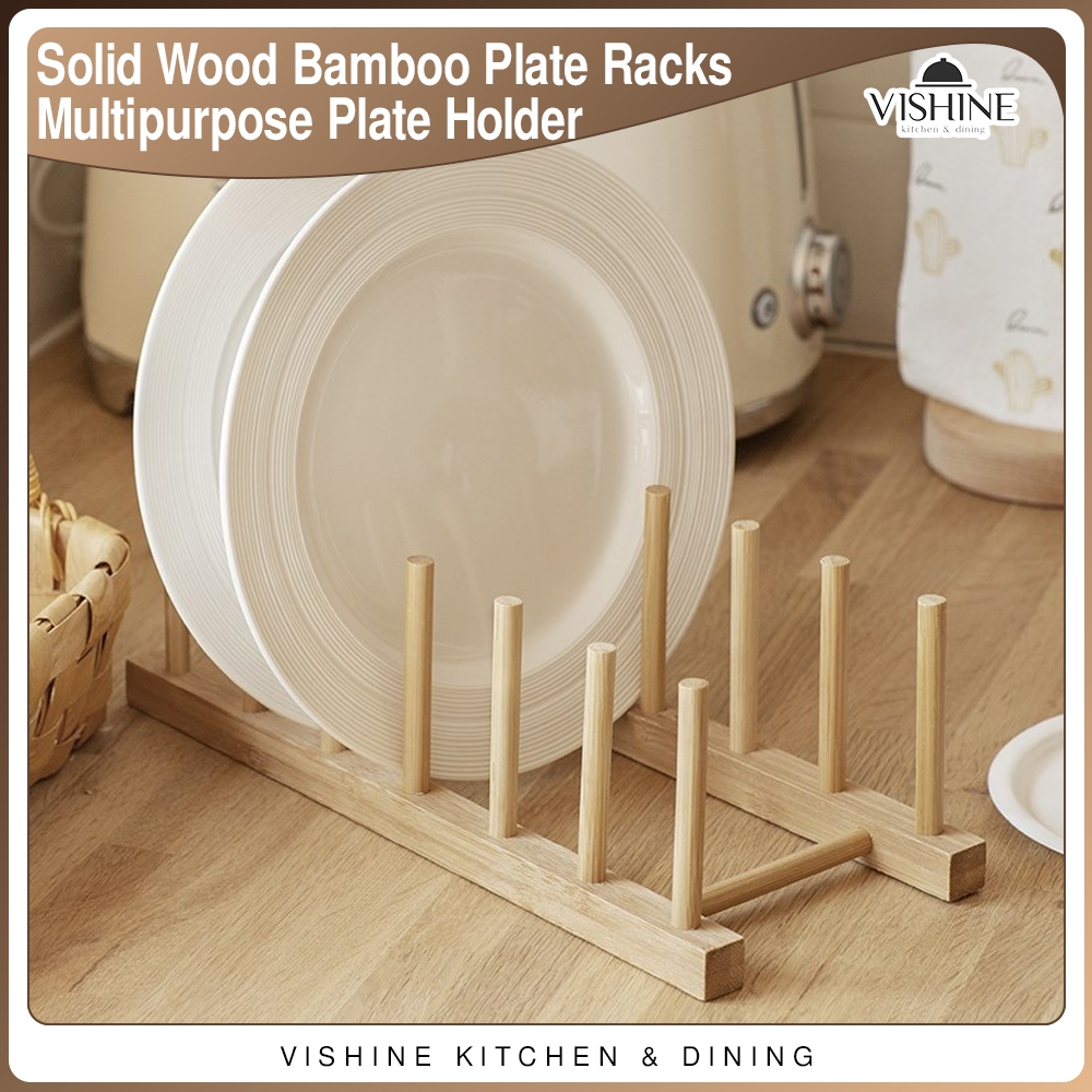 Solid Wood Bamboo Plate Racks Multipurpose Shelves Drainboard Kitchen Pot Lid Holder Plate Holder