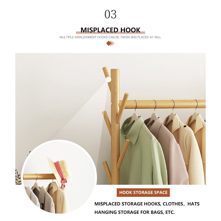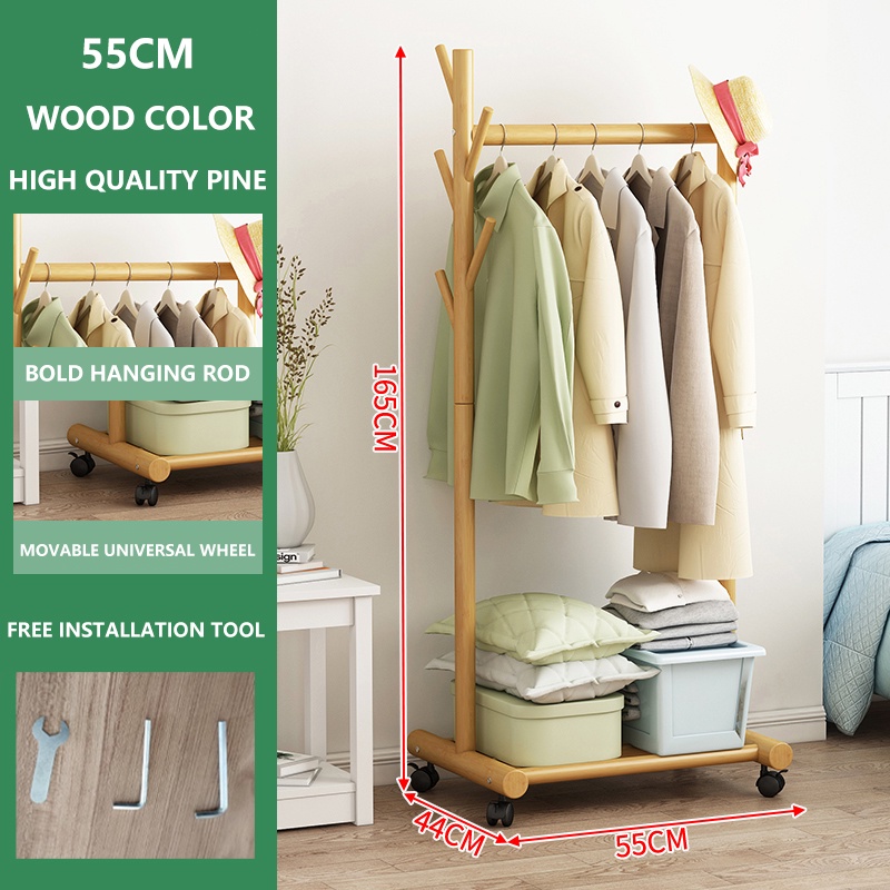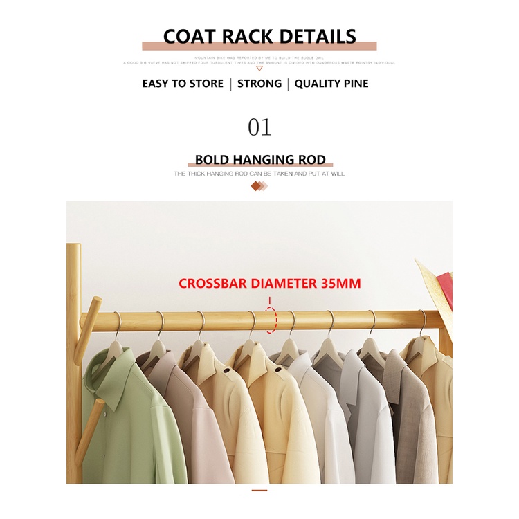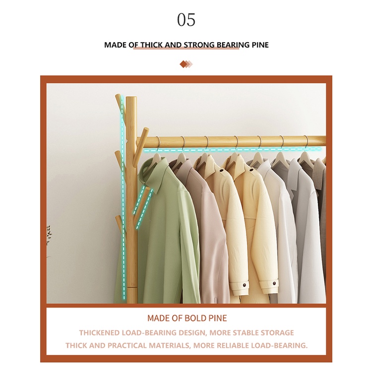 Solid Wood Hanger Rack Simple Modern Room Clothes Hanger Rack Indoor Household Clothing Rack Instock