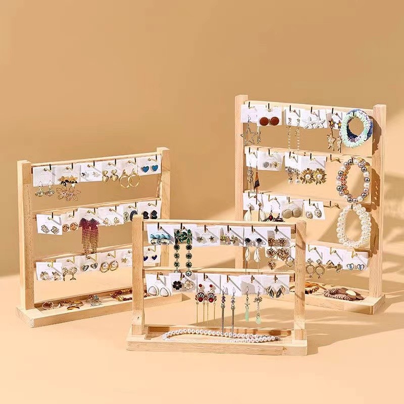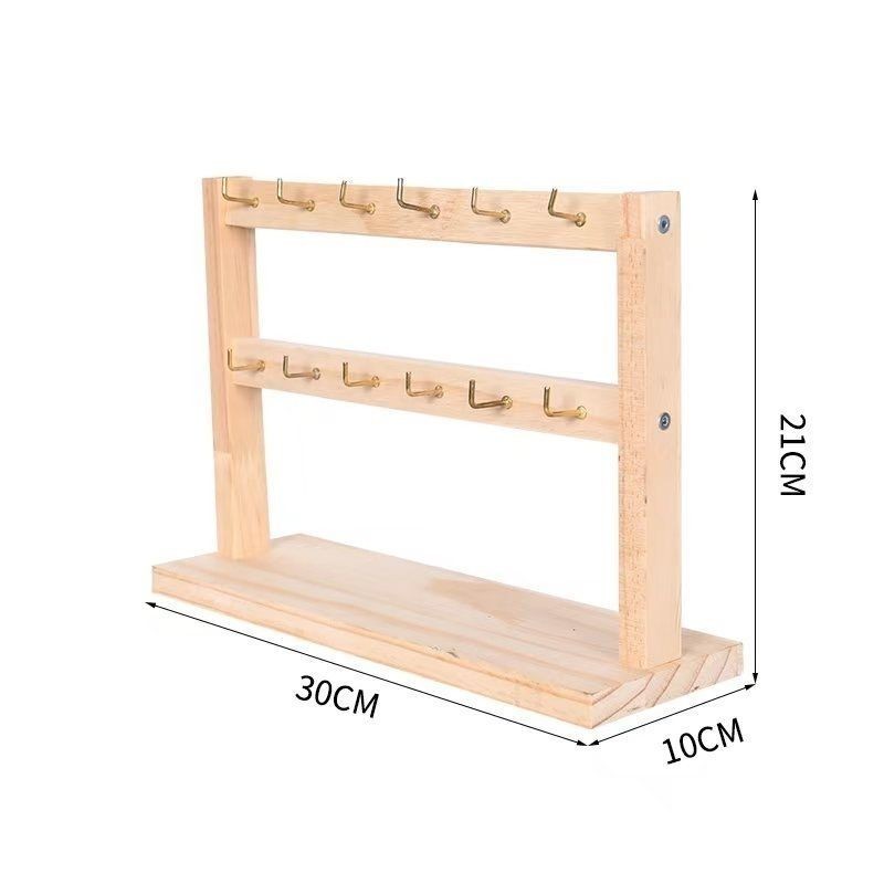 Solid Wood Jewellery Display Rack Desktop Necklace Earring Organiser Solid Wood Keychain Storage Rack Stall Display Rack with Hook Multifunctional Shelf