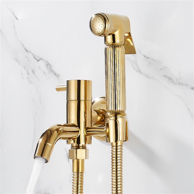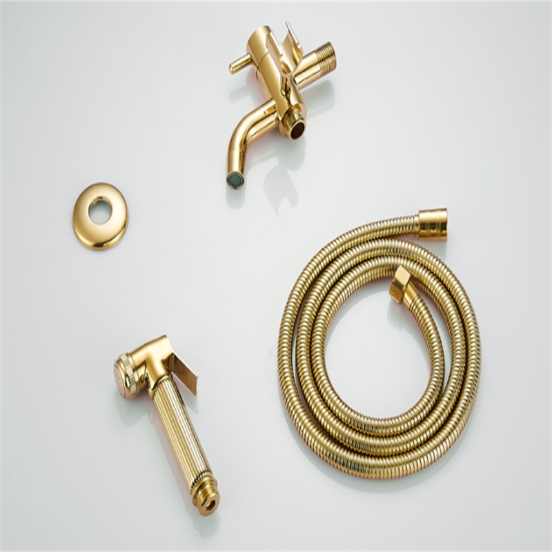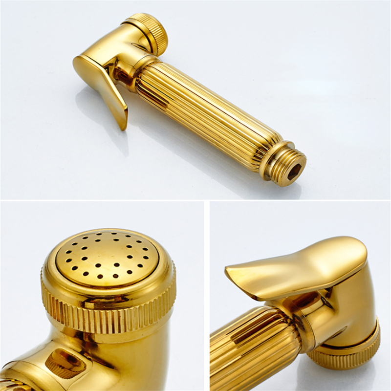 Solid brass bathroom shower sprayer gold polished handheld toilet bidet sprayer with faucet wall mounted faucet sprayer set