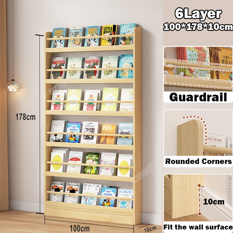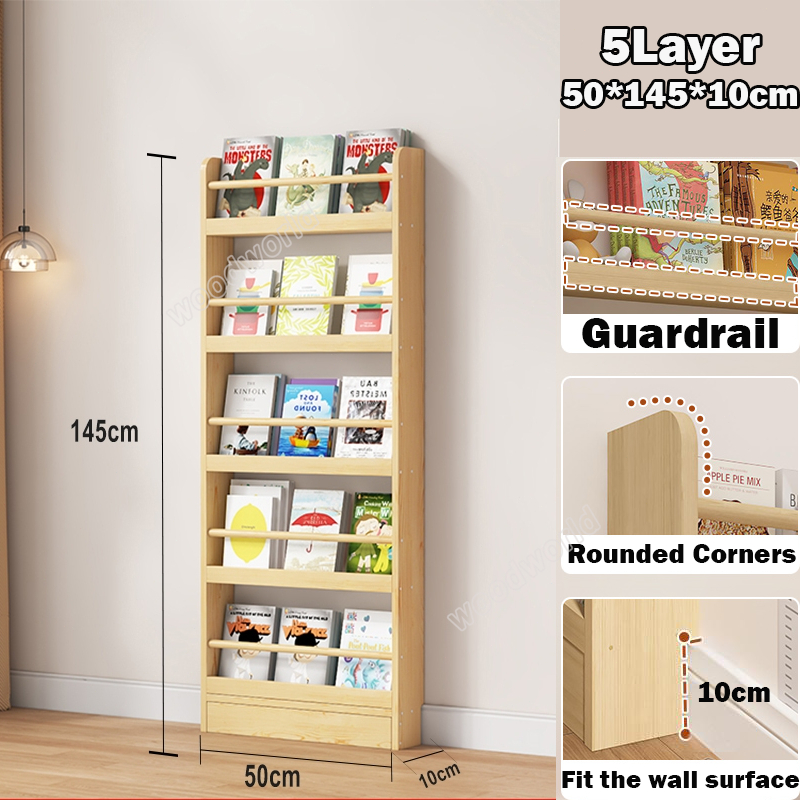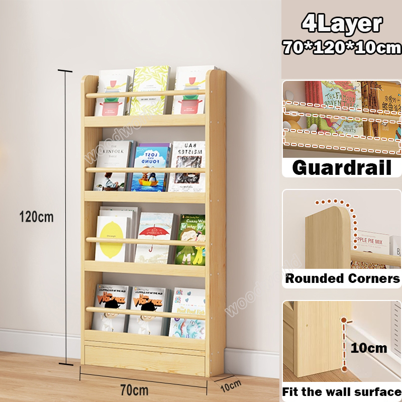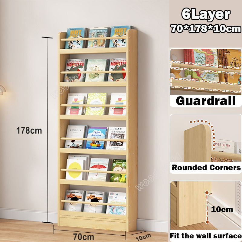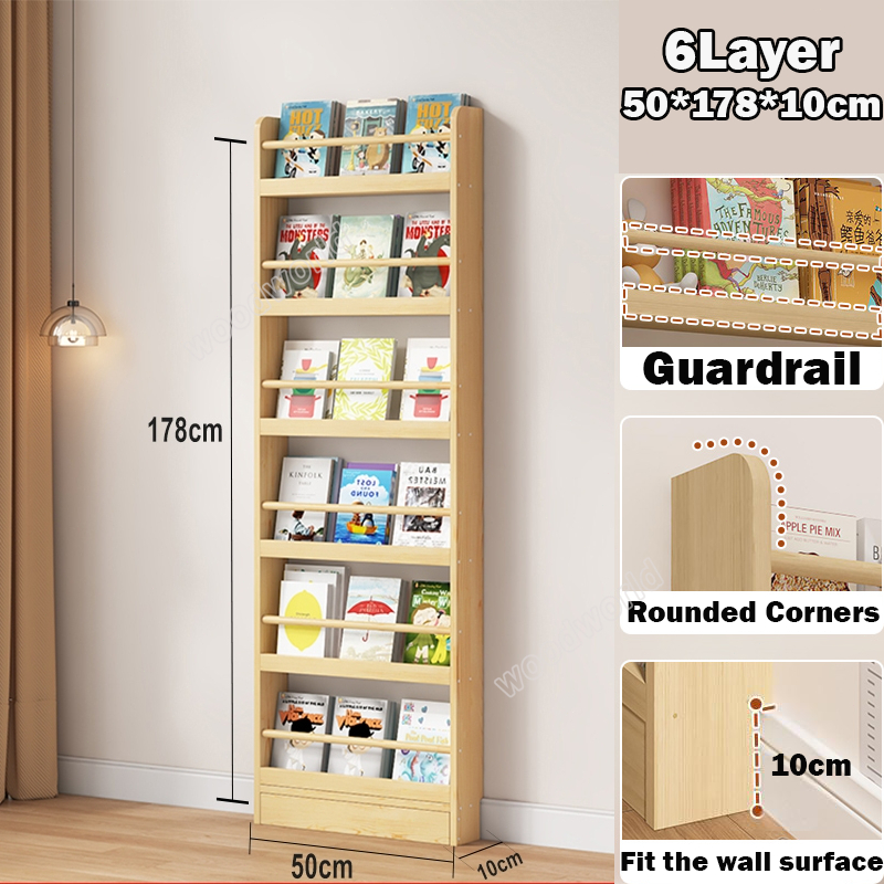 Solid wood bookshelf behind the door storage cabinet Multi-layer storage cabinet 3/4/5/6 Layers