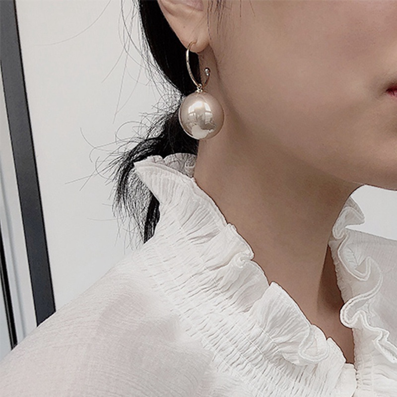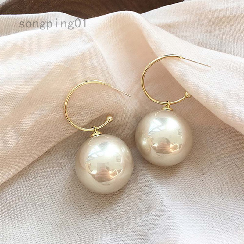 Songping01 Fashionable exaggerated pearl earrings Trendy Style Elegant Large Round Pearl Hoop Drop Earrings Big Ball Bead Pendant Dangle Earrings