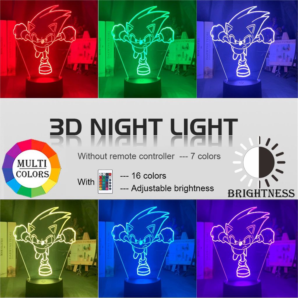 Sonic the Hedgehog Action Figure Night Kids Bedroom Light Up Anime Model Toys Decoration Table Lamp With Remote Control