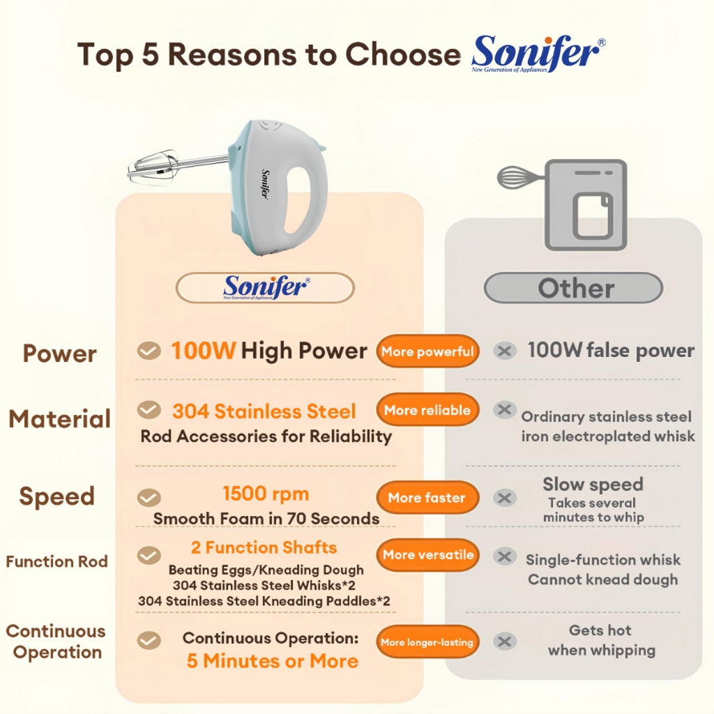 Sonifer Portable Electric Hand Mixer Electric Mixer For Baking Egg Beater Mixer Home Kitchen Tool