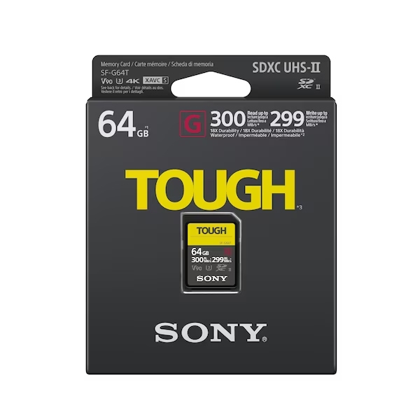 Sony SF-G64T/T1 64GB TOUGH-G series SDXC UHS-II SD Card, V90, CL10, U3, Max R300MB/S, W299MB/S Memory Card