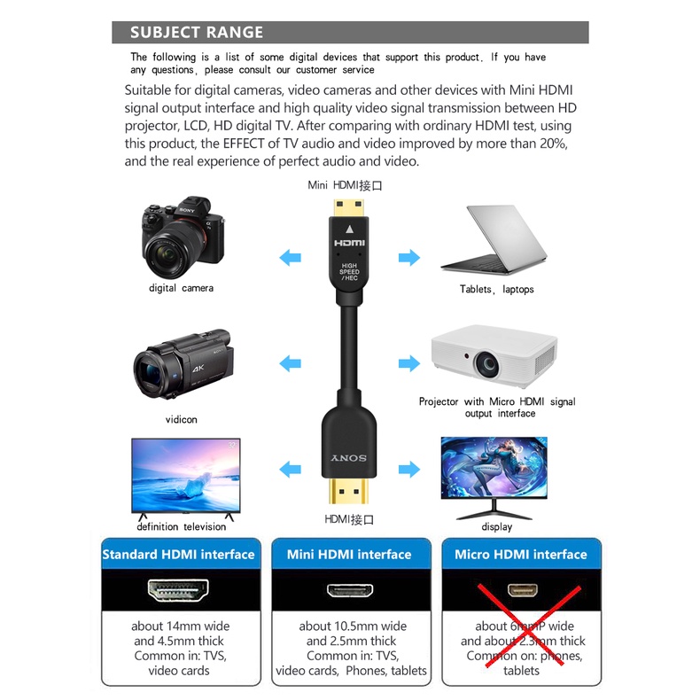 Sony original mini to HDMI mini HD cable 4K suitable for Canon/Nikon camera to TV/tablet 5D4 D850 online shooting connection video cable