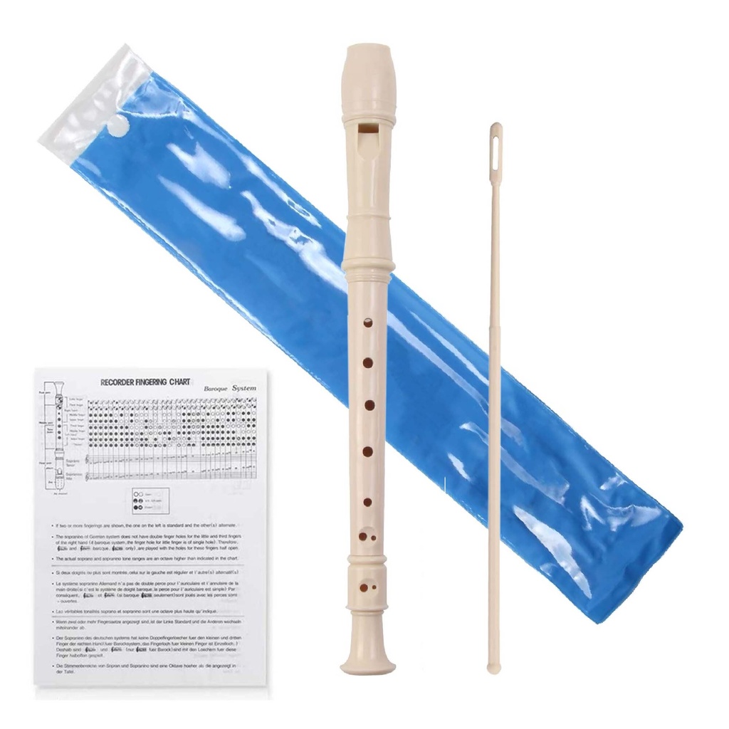 Soprano Descant Recorder 8-Holes Flute with Cleaning Rod, Case Bag & Finger Chart (White)