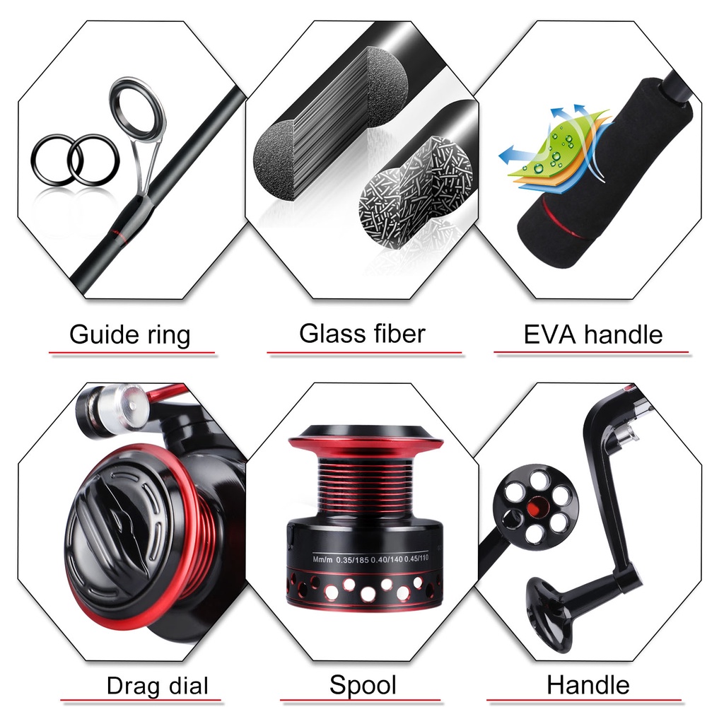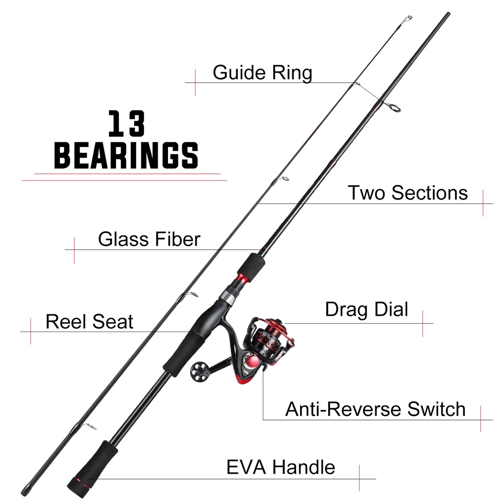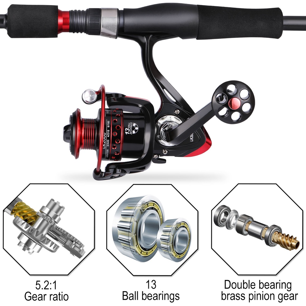 Sougayilang Fishing Set 1.8m/5.9ft-2.1m/6.9ft Spinning Rod 2000-5000 13bb 5.2:1 Reel Fishing