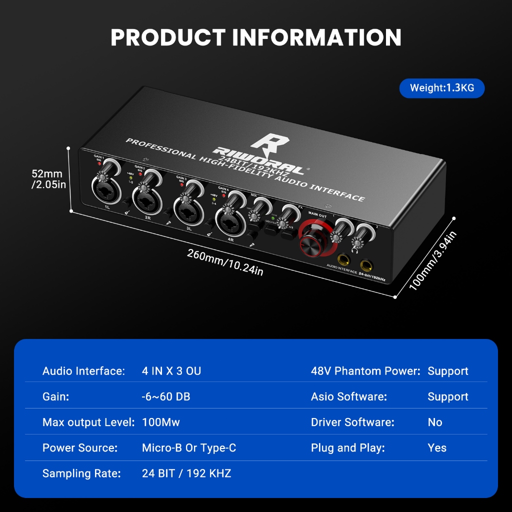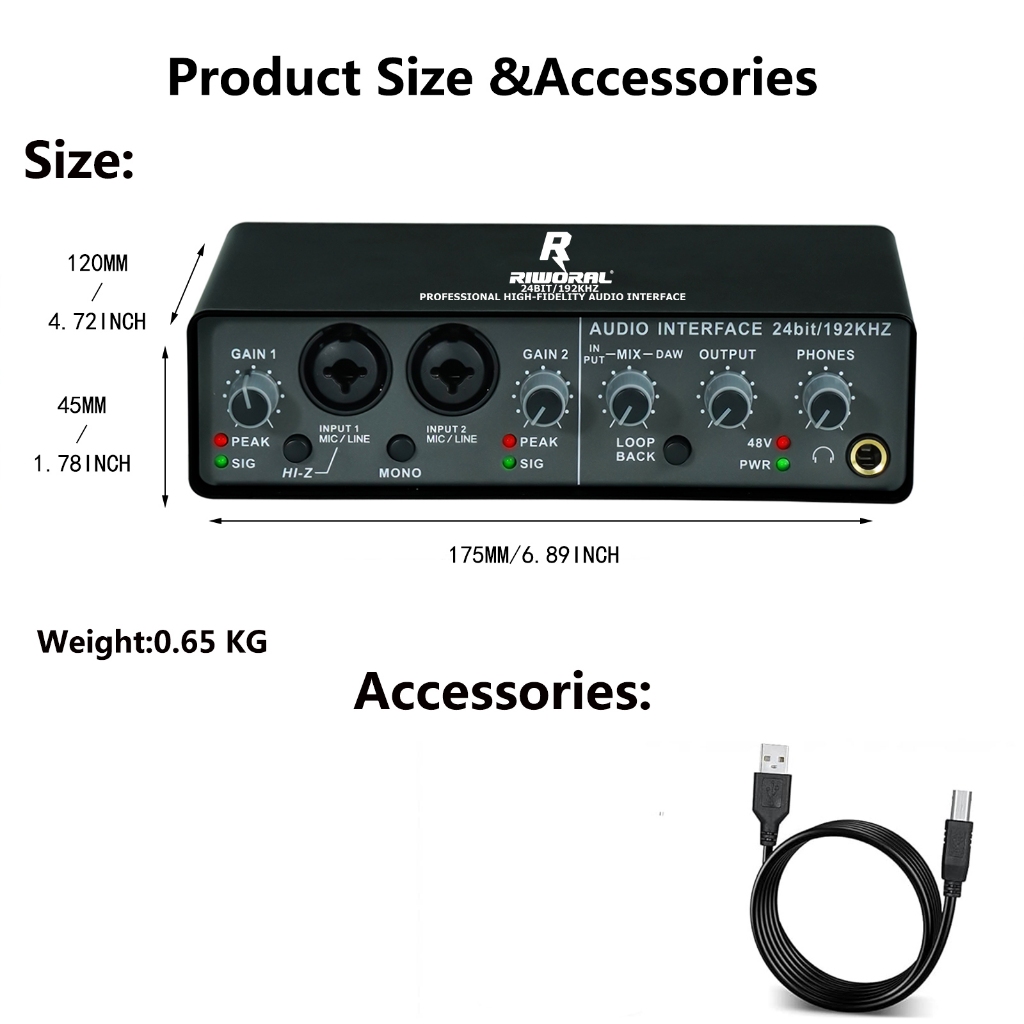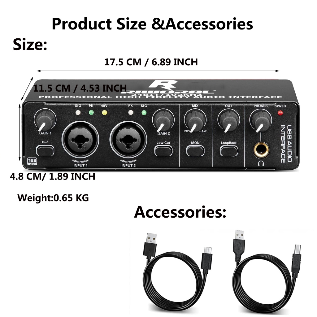 Sound Card 2 Channel Audio Interface System Stereo Mono USB 24-Bit 192 KHz Recording