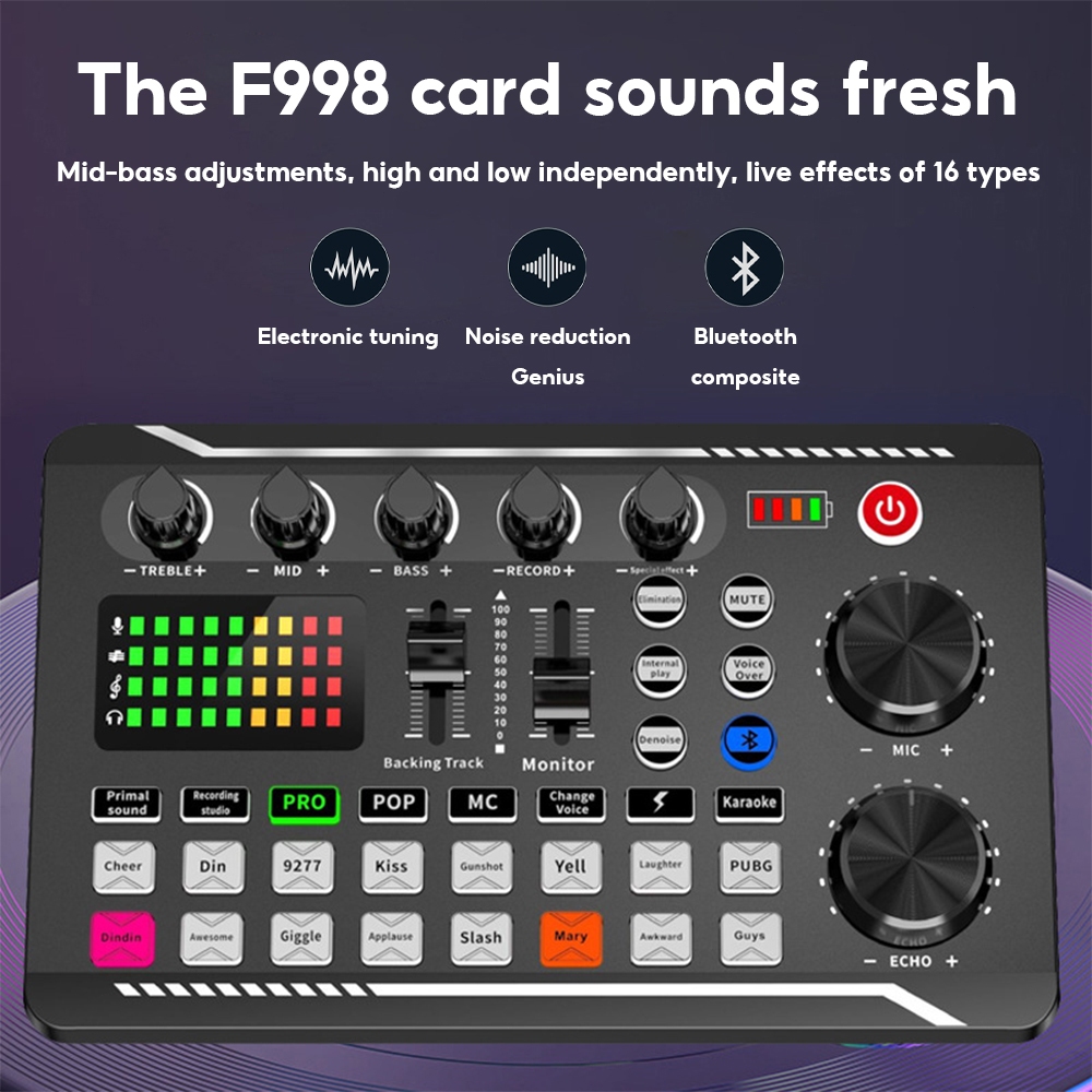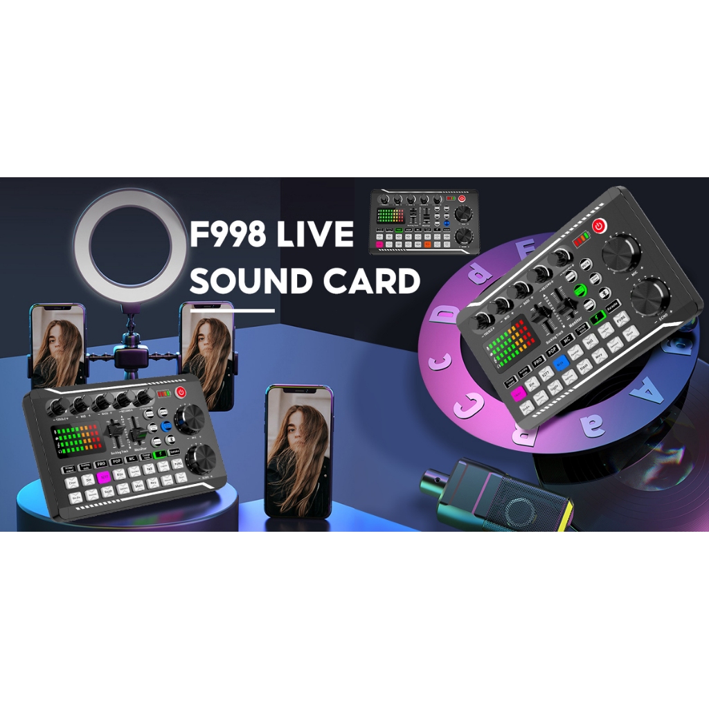 Sound Card V8S / F998 Audio Mixer USB External Sound Card Headset Microphone Live Soundcard Singing