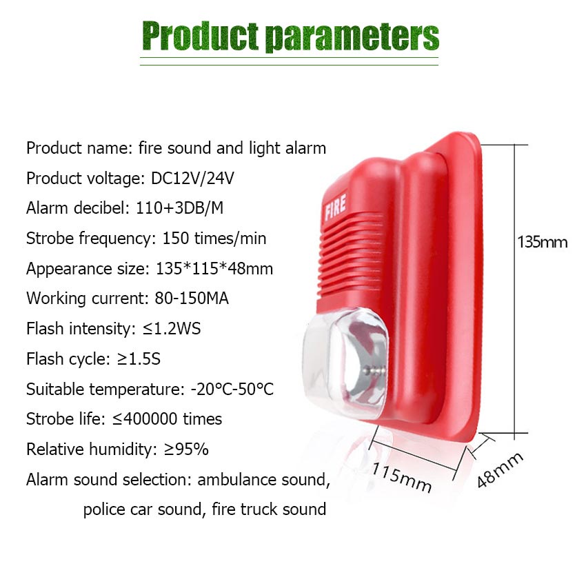 Sound & Light Fire Alarm Control System Sound Strobe Warning Siren Alert Security System for Home