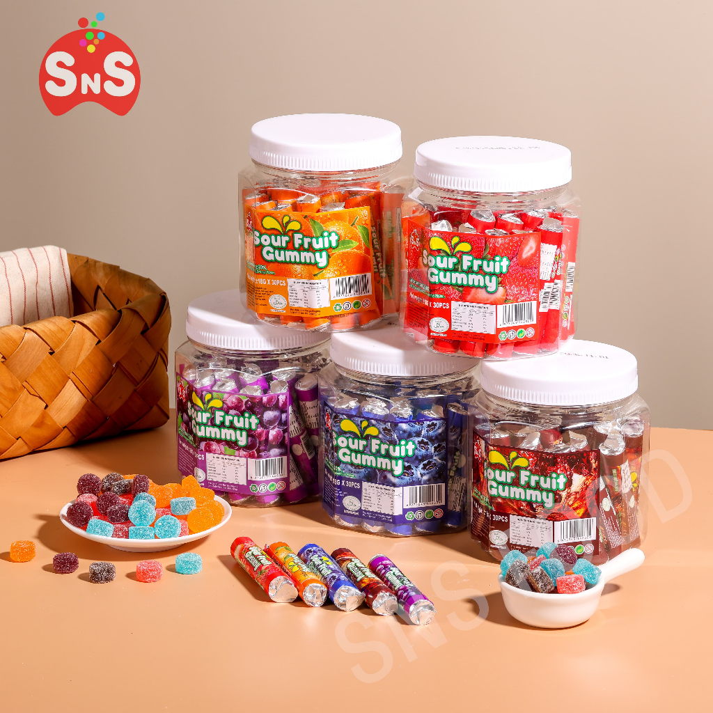 Sour Fruit Gummy Chewy Candy Blueberry / Cola Soda / Orange Flavored Chewy Candy Gummy 30 Pieces