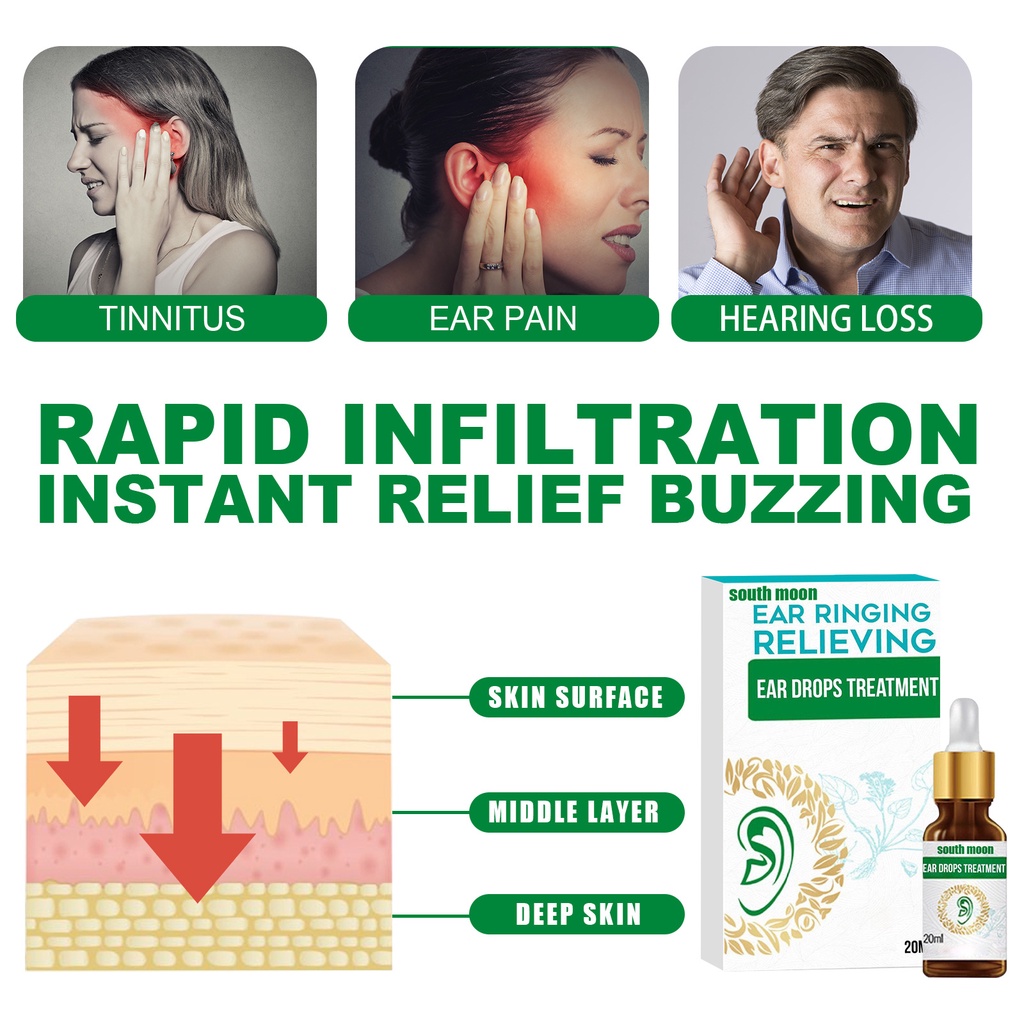 South Moon Ear Drops Treatment Quick Effect Tinnitus Hearing Impairment Drops for Relieving Ringing Sound Ear Care 20ml
