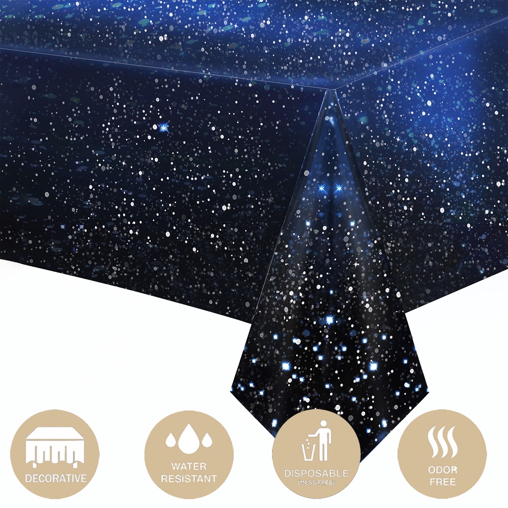 Space Theme Party Starry Sky Disposable Plastic Tablecloth Decoration Galaxy Table Cover Stars Happy Birthday Party Decor Kids