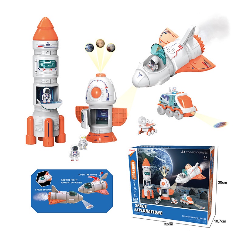Space Toy for Kids Rocket Ship Toys with Space Shuttle, Astronaut Figures, Space Rover, Spaces Station Spaceship Toy with Sound & Lights