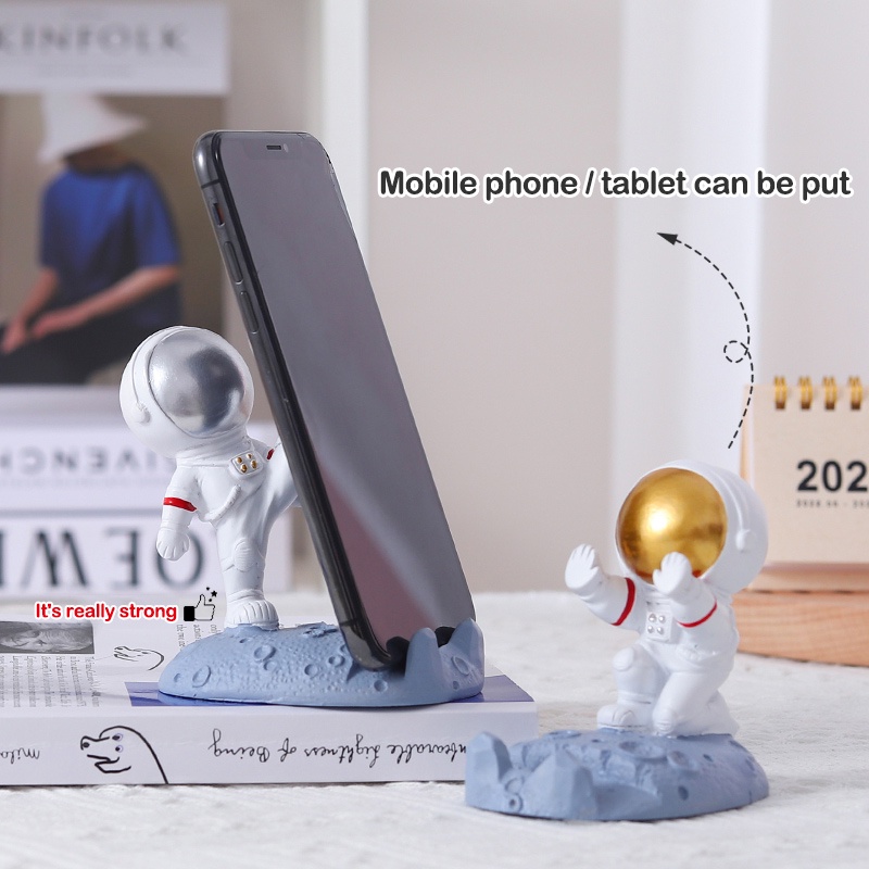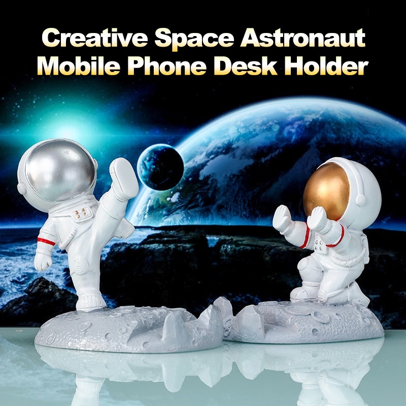 Spaceman Astronaut Statue Cell Phone Tablet Desktop Stand Desk Holder