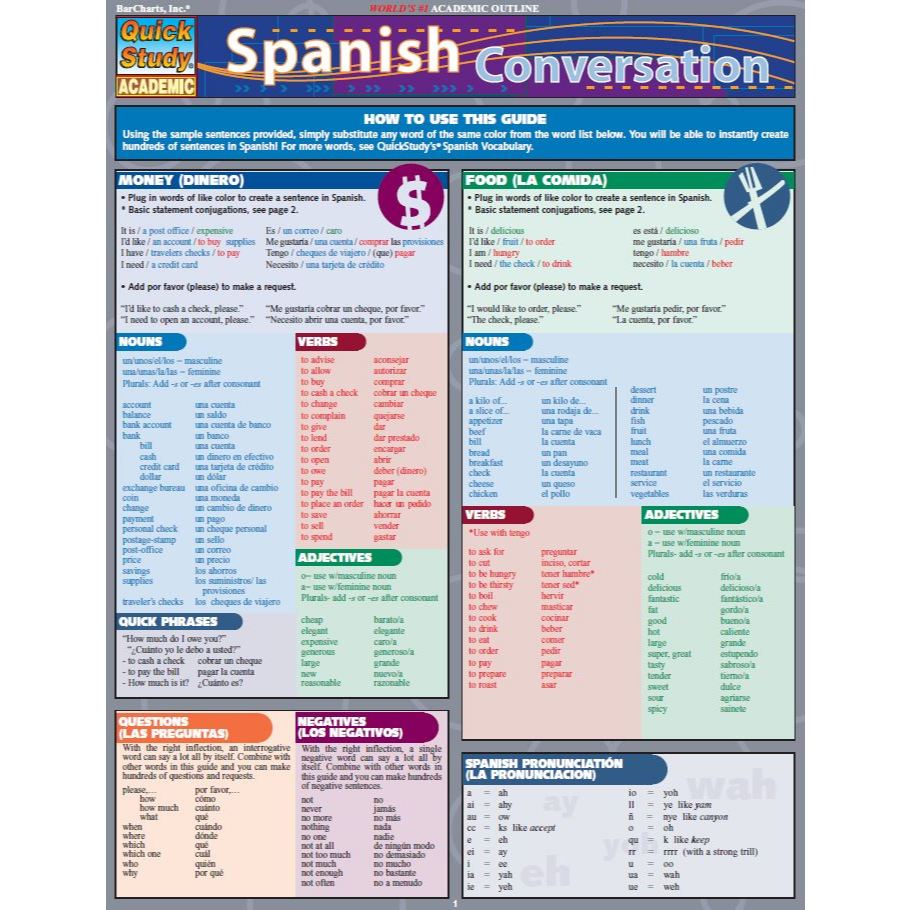 Spanish (Cheat Sheet) - Laminated