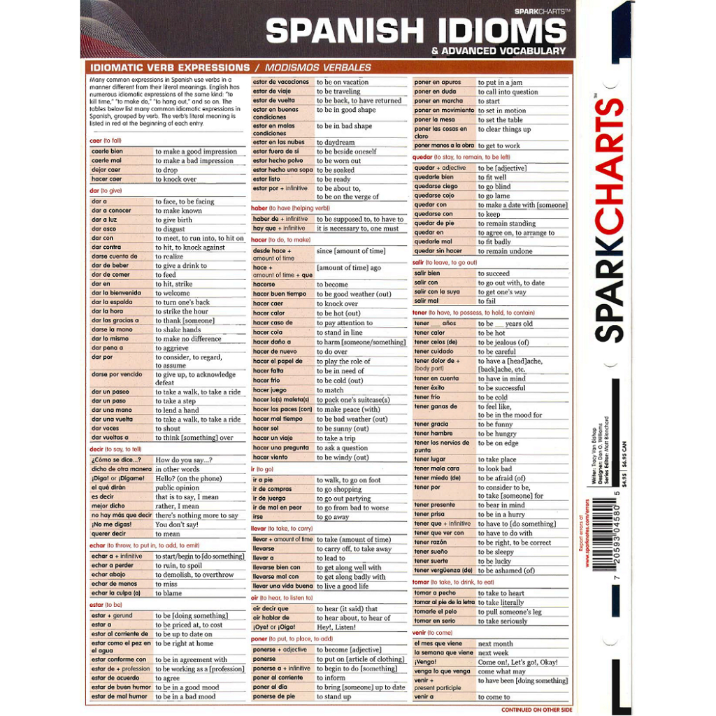 Spanish Idioms and Advance Vocabulary (Cheat Sheet) - Laminated