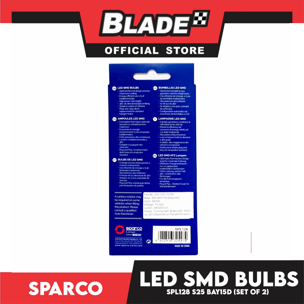 Sparco Led Smd Bulbs SPL128 S25 BAY15D (Set of 2) Use for Turning, Brake & Back-up Light