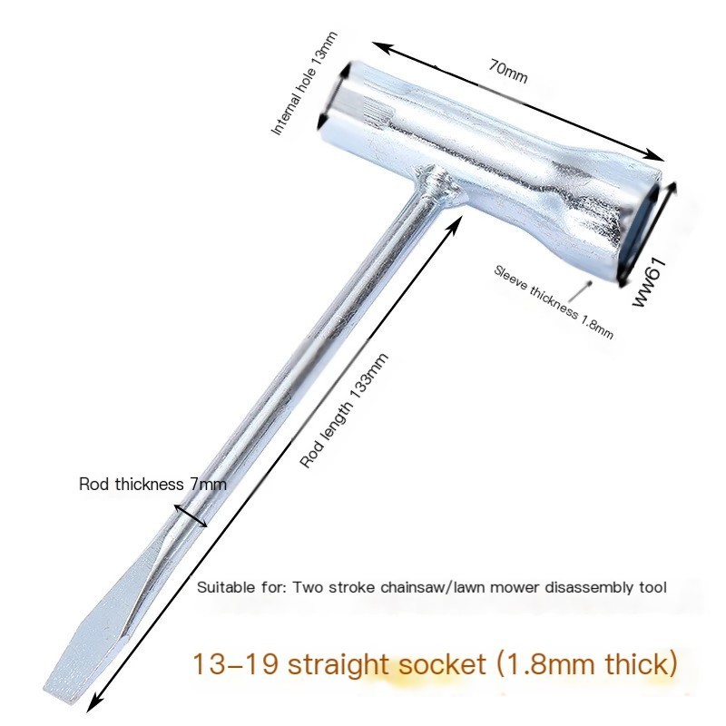 Spark Plug Socket Wrench 13mm 19mm Stainless Steel Spanner for Gasoline Chainsaw and Brush Cutter