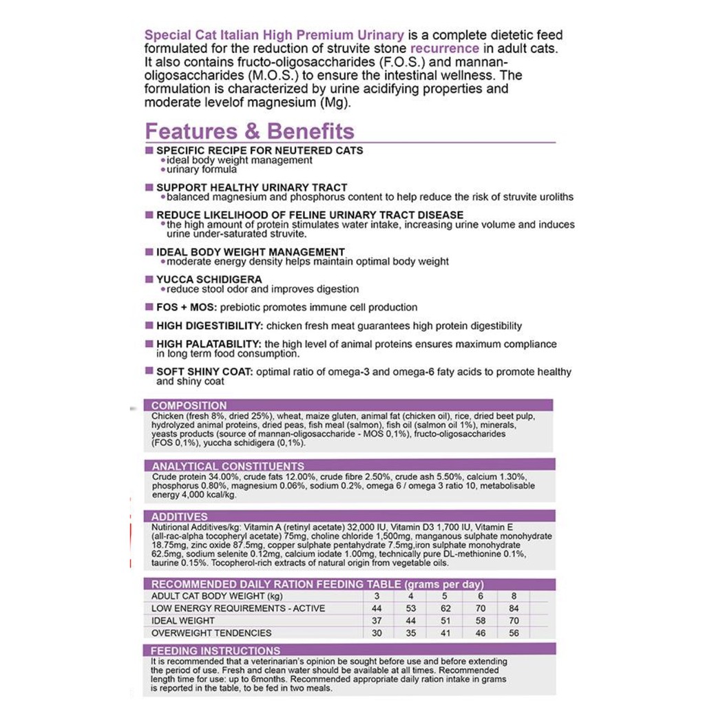 Special Cat URINARY / Special Cat Chicken & Turkey. 1.5kkg (ORIGINAL PACKAGING)