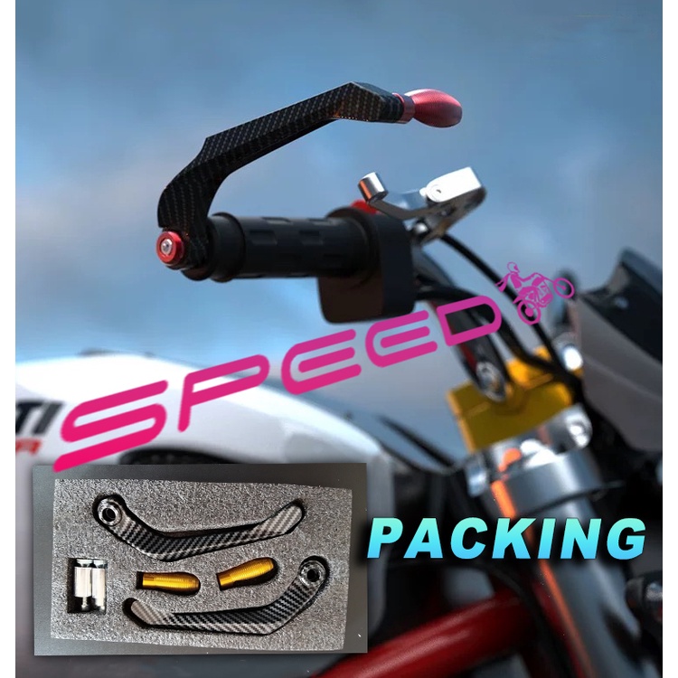 SpeedMOTO Motorcycle Carbon Brake Lever Guard Full Alloy Stainless Universal Protectors SET 2PCS