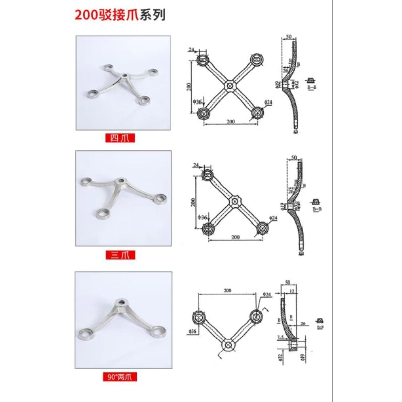 Spider 250series & 200series fittings glass connector holder Stainless 304 (One-way/Two-way/4 way)