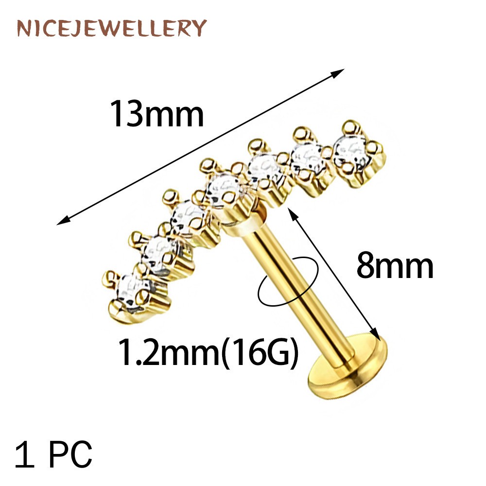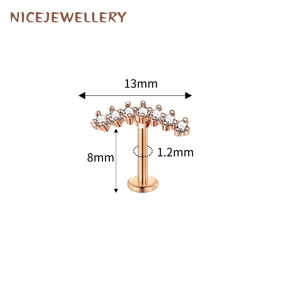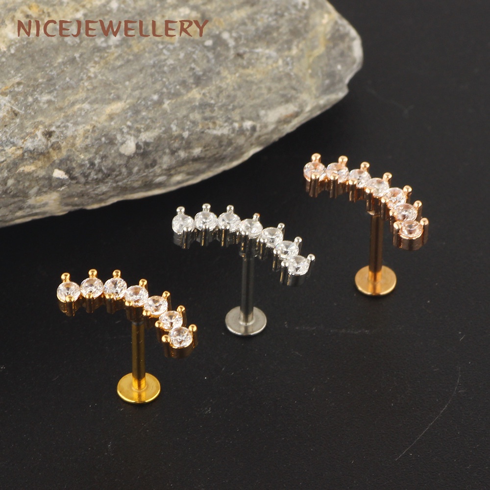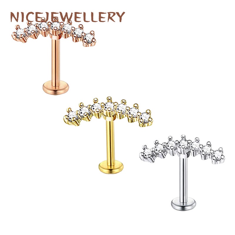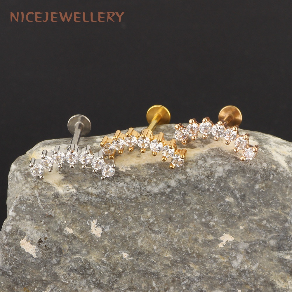 Spiral Cartilage Piercing 16G Surgical Steel Stud Earring 1PC Cubic Zircon Labret Piercing