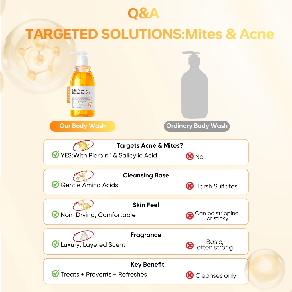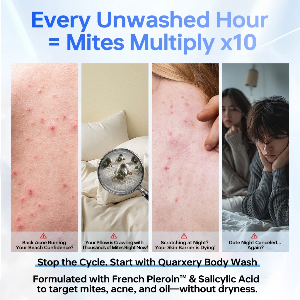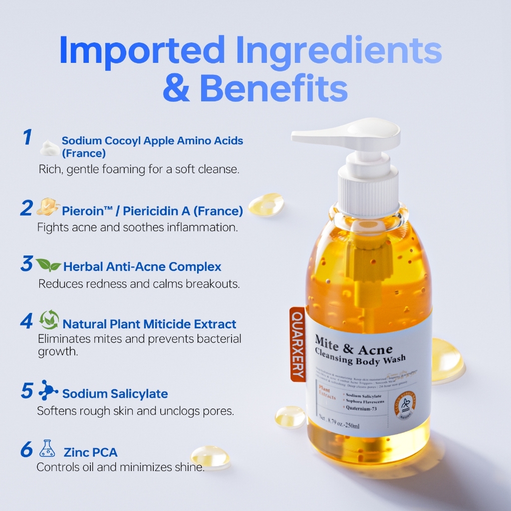 Body Wash Mite & Acne Shower Gel & Fragrance Roll-On Acne Treatment & Mite Removal Deodorant 2in1
