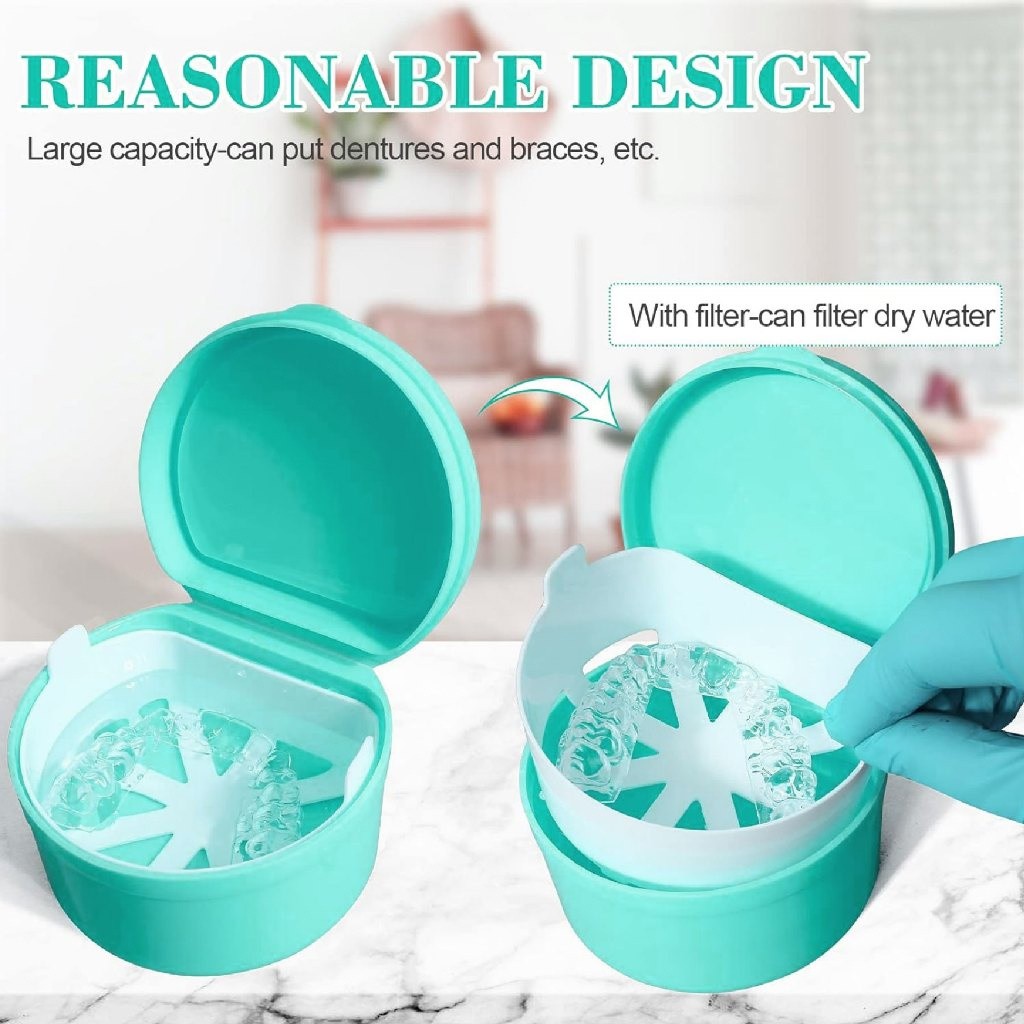 SUPERSALE Denture Storage Box with Strainer Basket False Teeth Container Random Color
