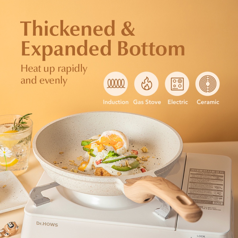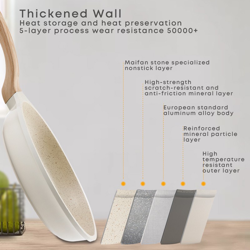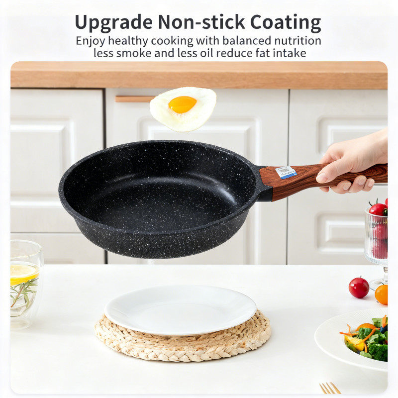 Non Stick Pan Frying Pan with Lid PFOA Free Maifan Stone coating Suitable for Induction Stove