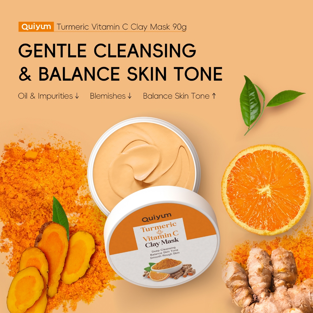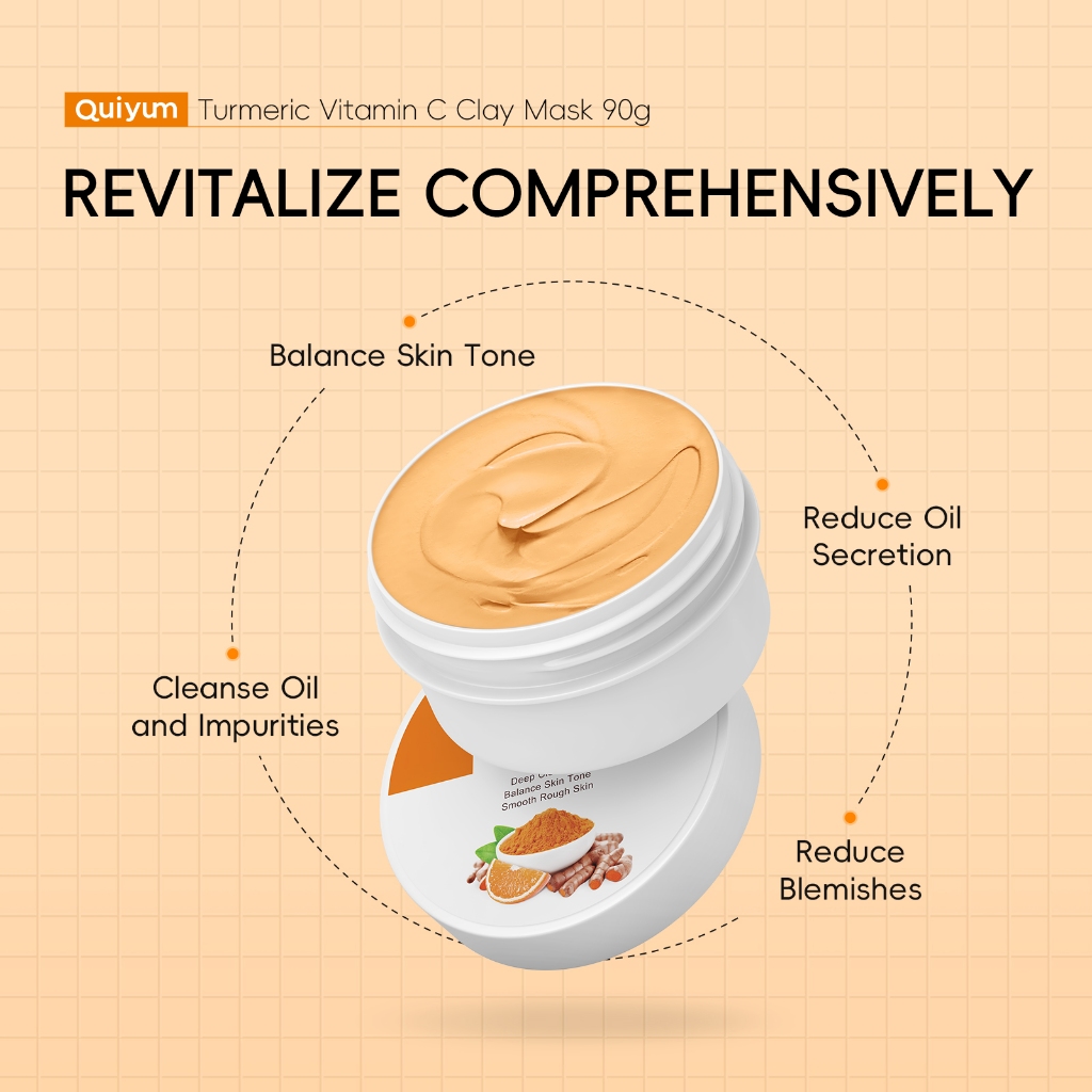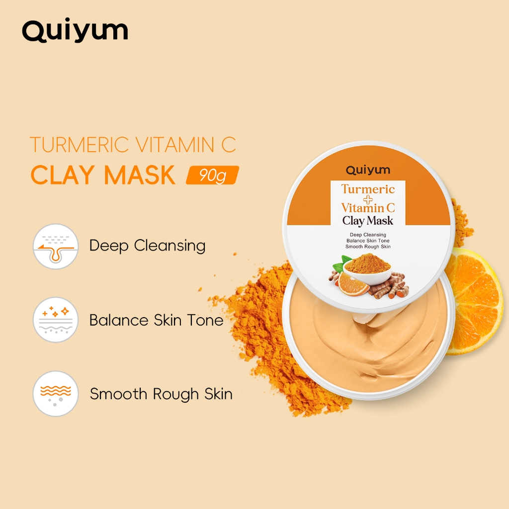 QUIYUM Turmeric Vitamin C Clay Mask Deep Cleansing, Improve Dull Skin, Tighten Pores, Anti-oxidant, Smooth Rough Skin 90g