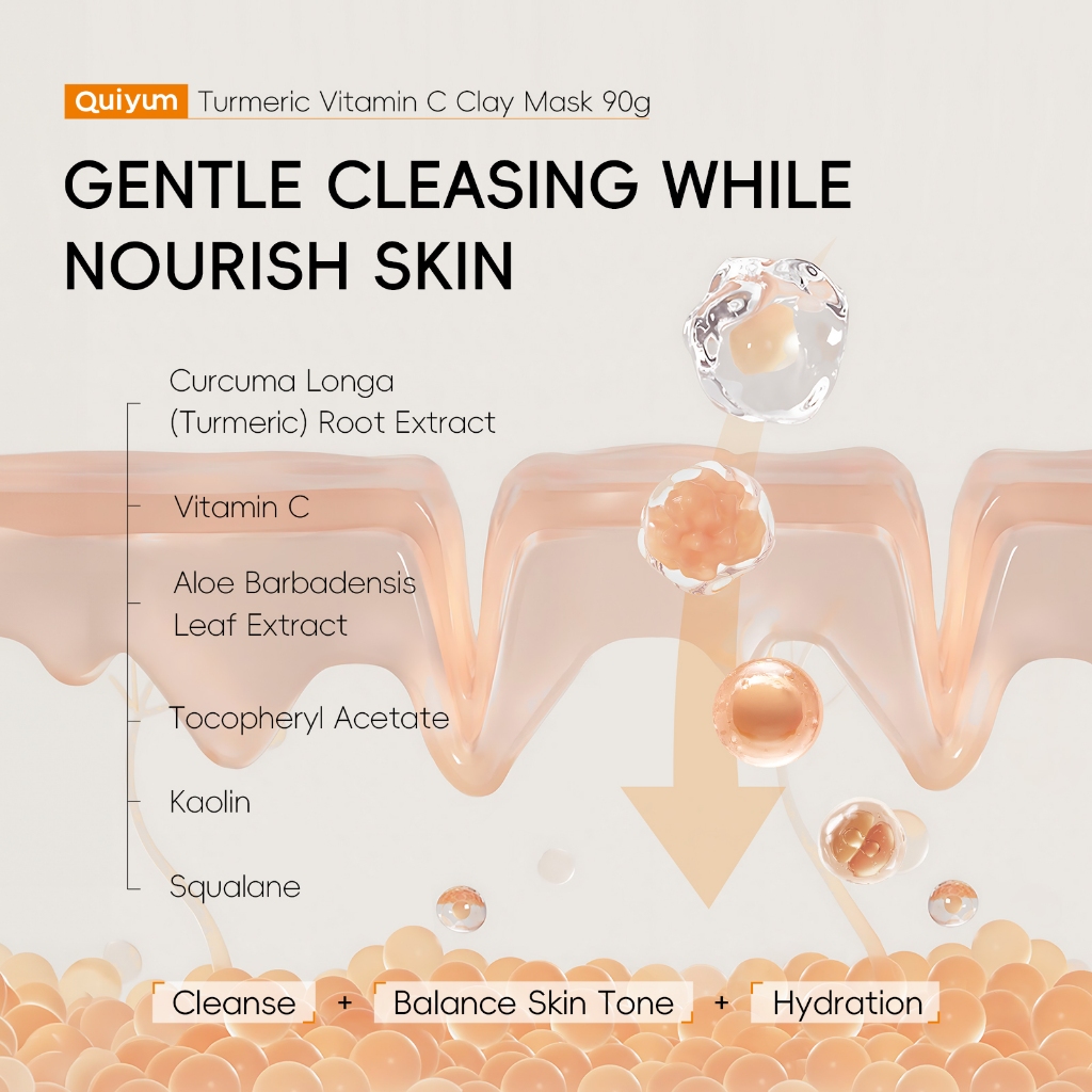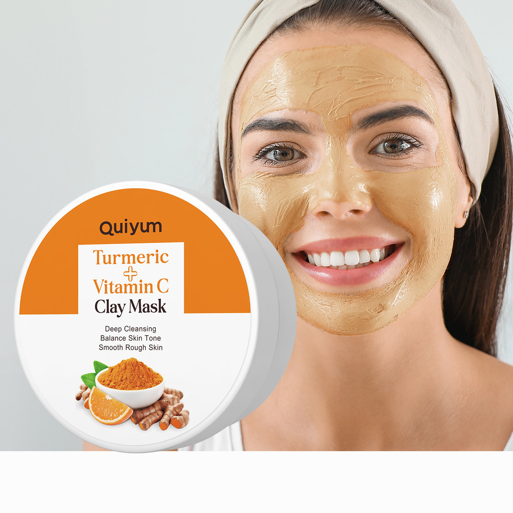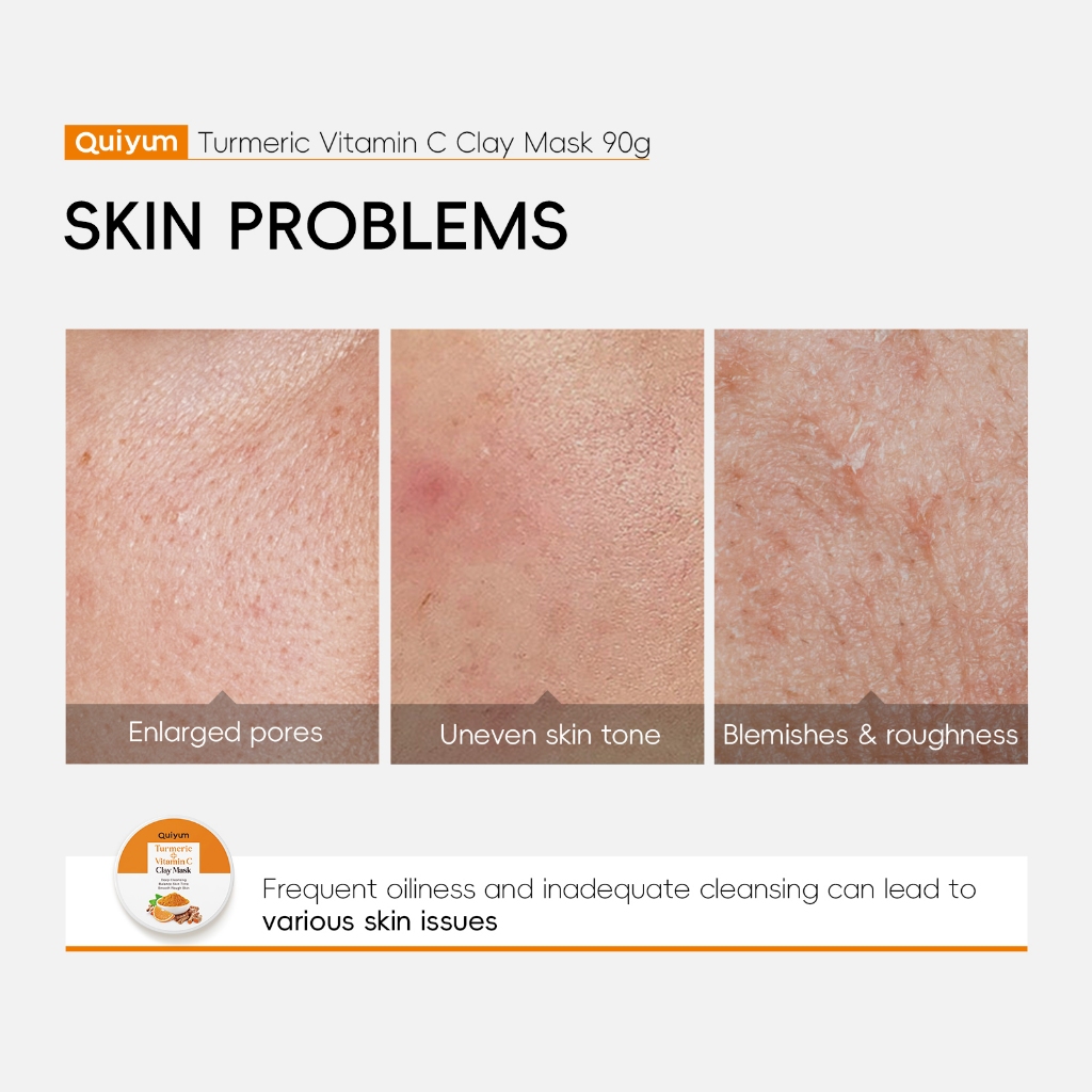 QUIYUM Turmeric Vitamin C Clay Mask Deep Cleansing, Improve Dull Skin, Tighten Pores, Anti-oxidant, Smooth Rough Skin 90g