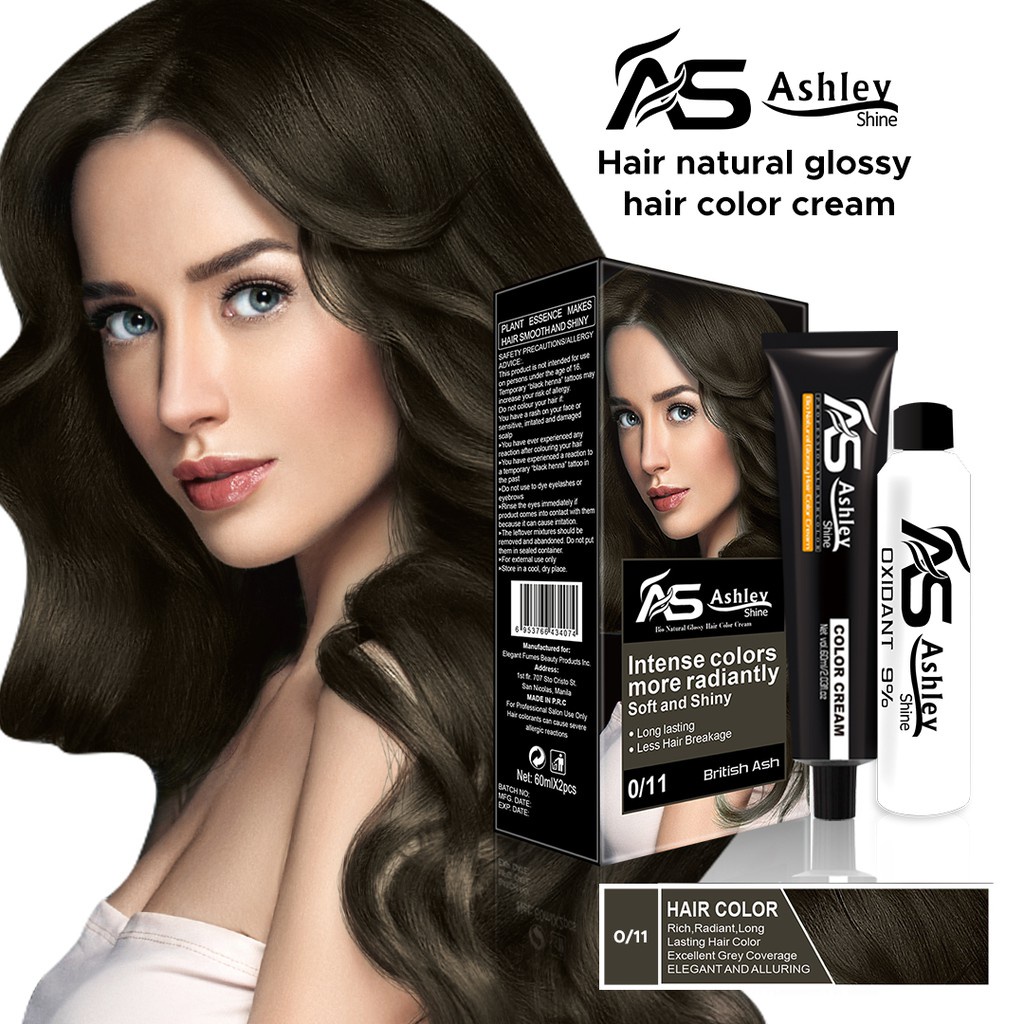 Ashley 2in1 bi natural glossy hair color cream 0/11 (British ash) 60ml