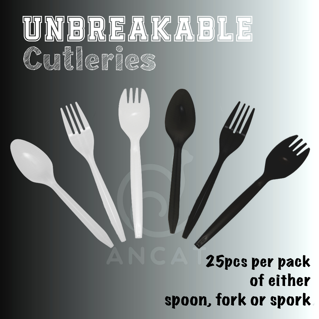 Unbreakable White or Black Spoon and Fork 25pcs