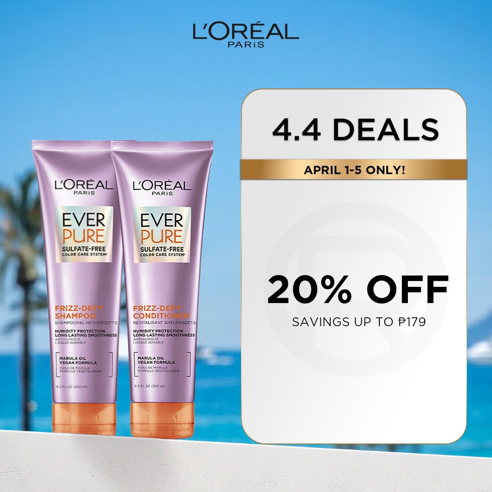 LOreal Paris Ever Pure Frizz-Defy Shampoo and Conditioner Set (250mL) - Hair Treatment, Sulfate Free