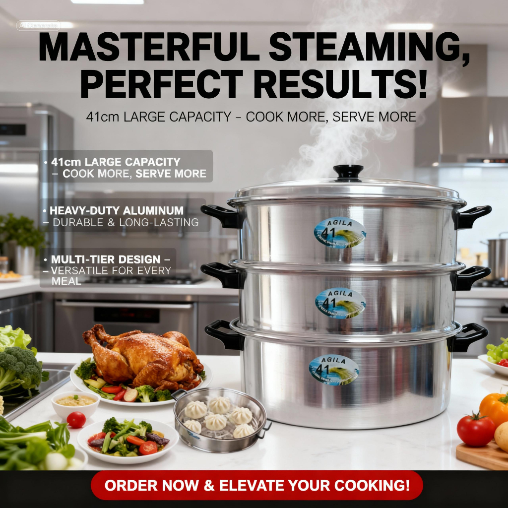 41CM AGILA STEAMER 3LAYER HEAVY DUTY BIG SIZE KITCHENWARE