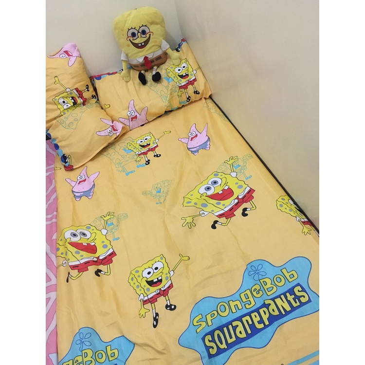 SpongeBob 3 in 1 Bed Sheet Single/Double/Queen Size Cotton Bedsheet Yellow Beddings Home Living