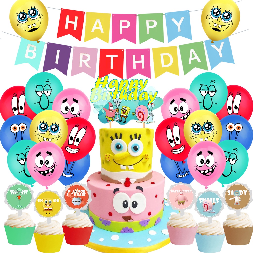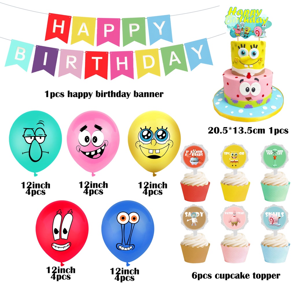 SpongeBob Children Birthday Party Supplies Cartoon Animation Birthday Decorations Happy Banners Late