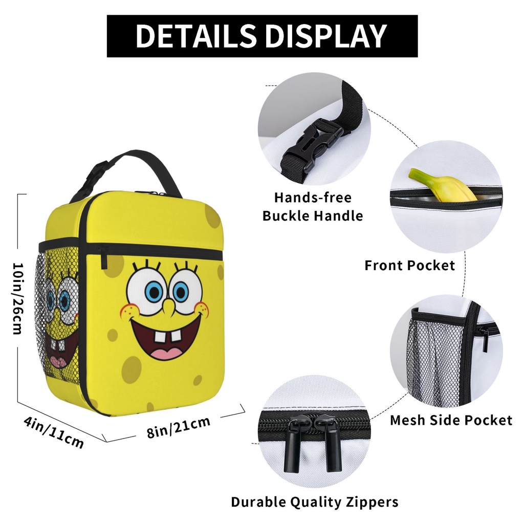 SpongeBob Kids lunch bag Portable School Grid Lunch Box Student with Keep Warm and Cold