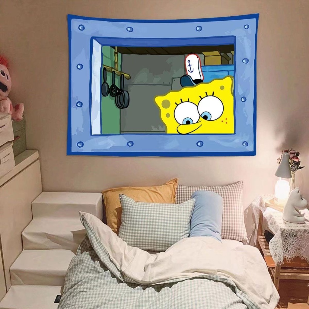 SpongeBob & Octopus Cartoon Hanging Tapestry for Creative and Funny Bedroom Wall Decoration - Photo Frames & Wall Decoration