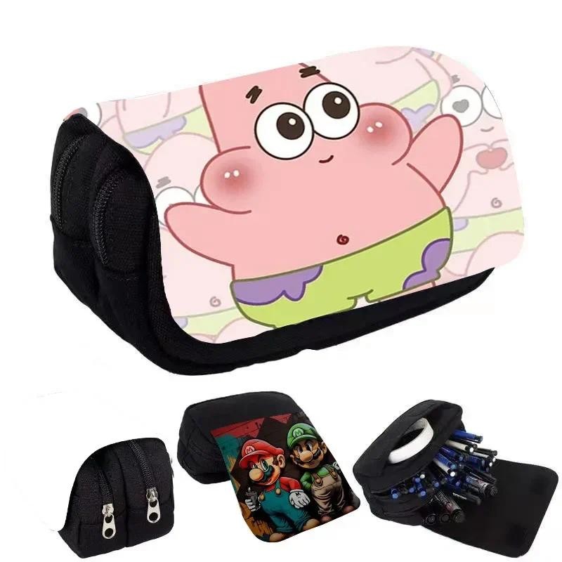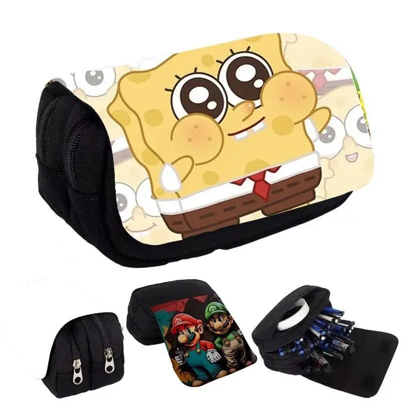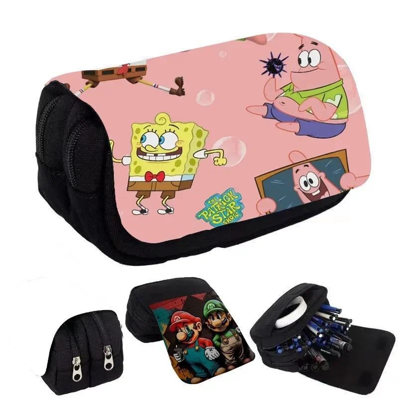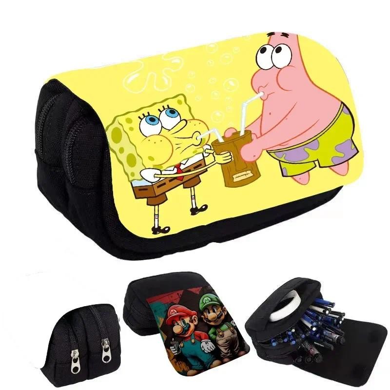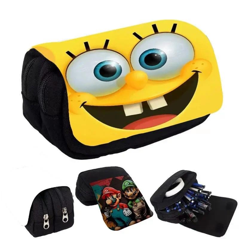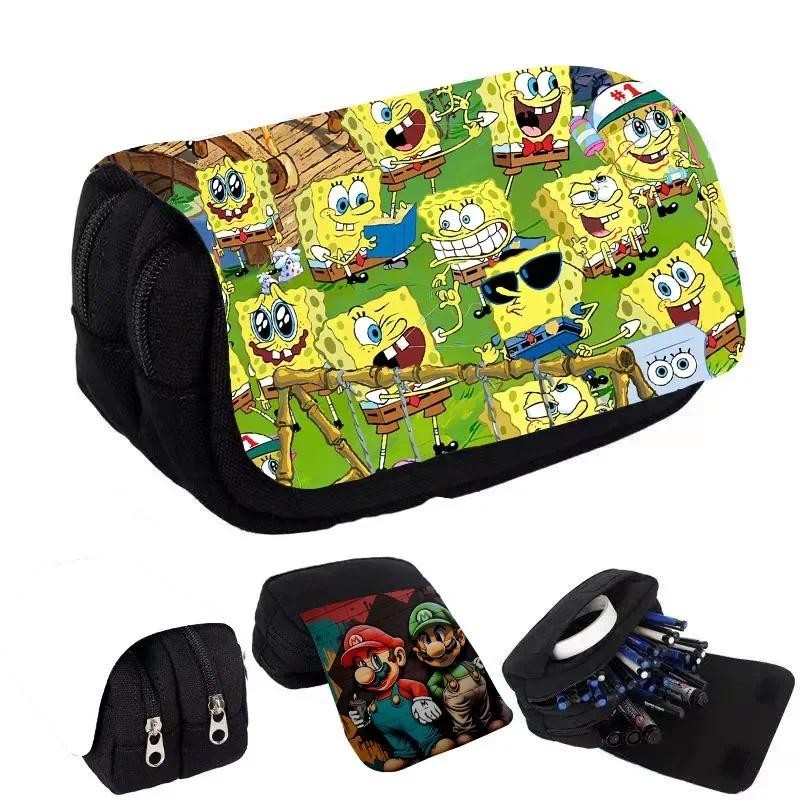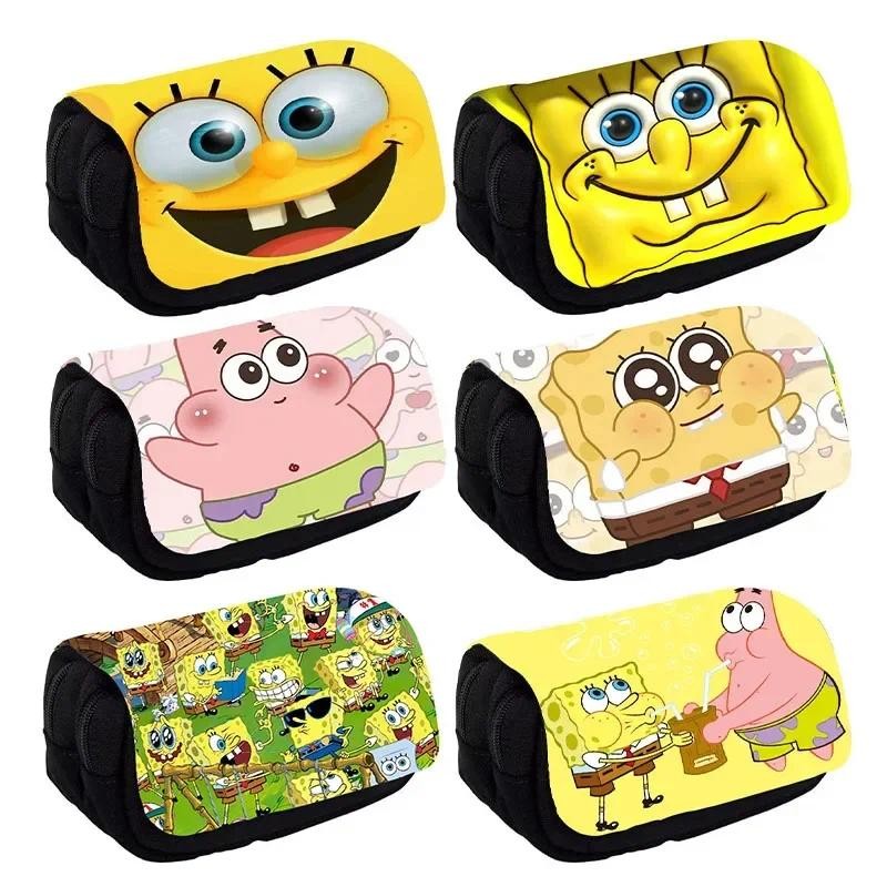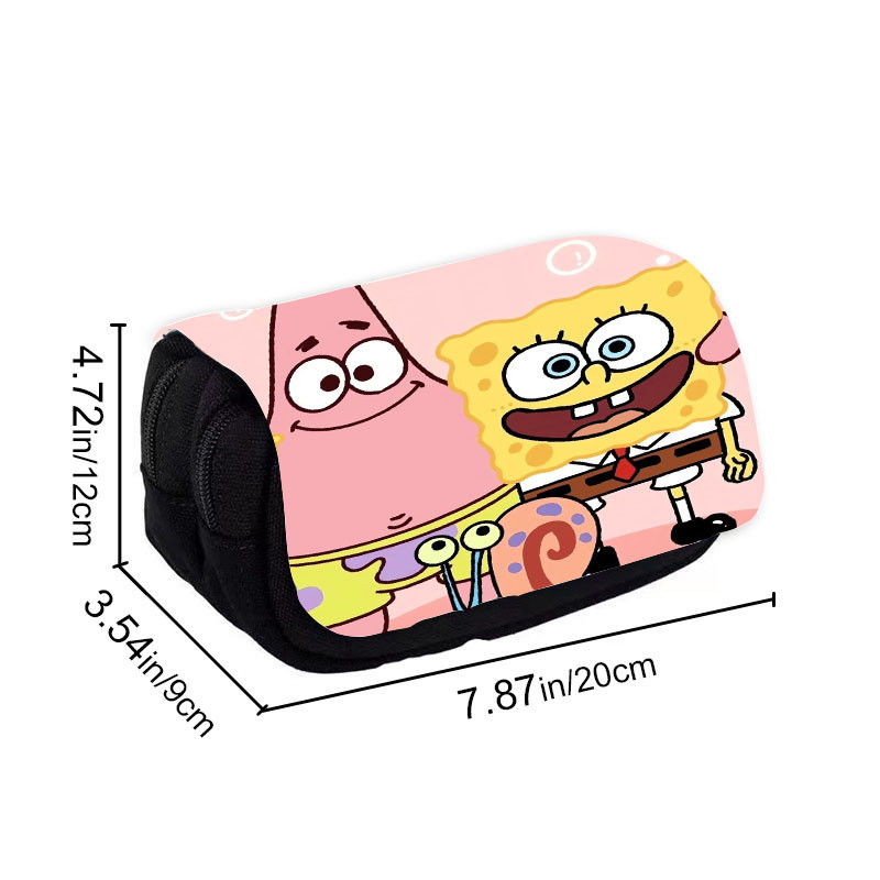 SpongeBob SquarePants Student Cute Pencil Case Movie Anime Cartoon Full Color Printed Portable Pen Stationery Storage Pencil Bag