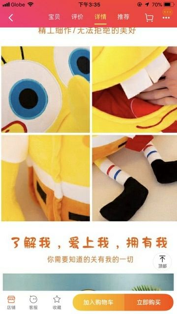 SpongeBob washable Stuff-toy Cotton Type size 45/55/70cm soft stufftoys