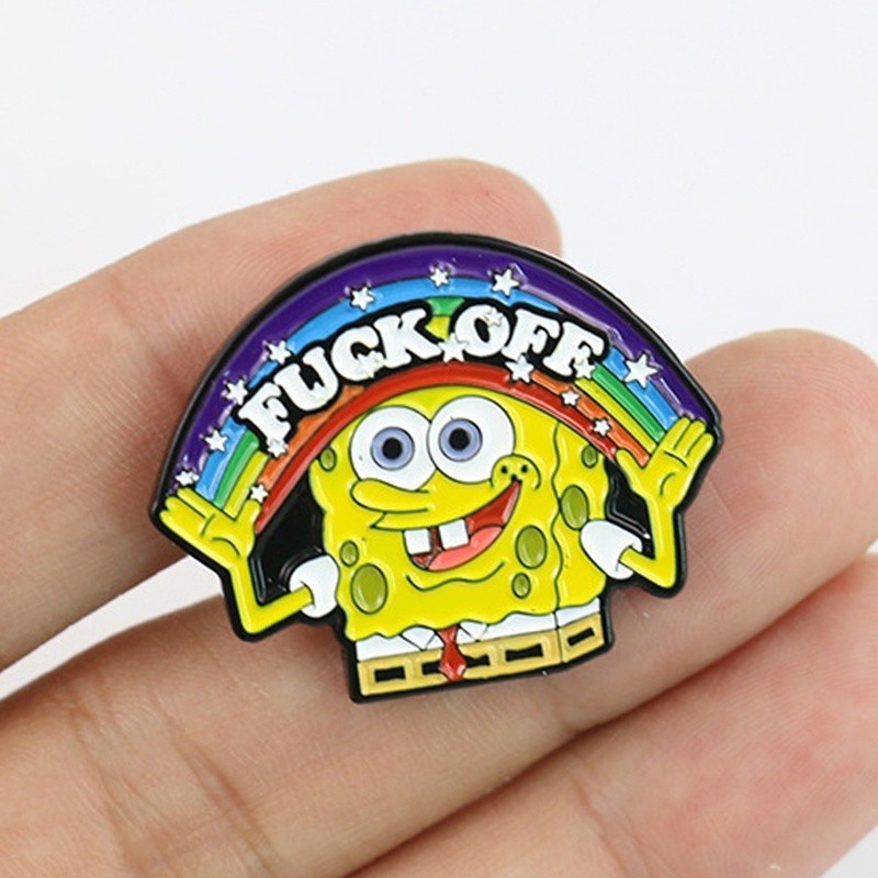Spongebob Enamel Pin Rainbow Banner Lettering Spongebob Brooch Funny Lapel Pin Badge