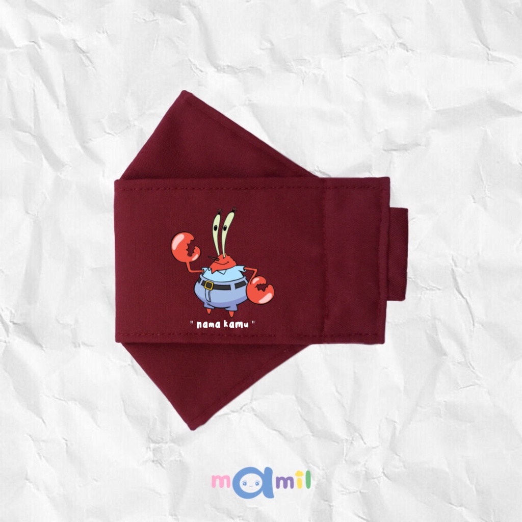 Spongebob Mask || 3d 3D Character Cloth Mask+STOPPER || Custom Fabric Mask Embroidered LOGO Name Screen Printing || Child Mask || Earloop Mask || Souvenir