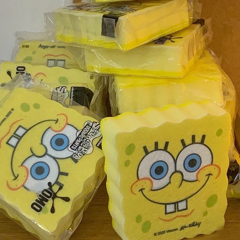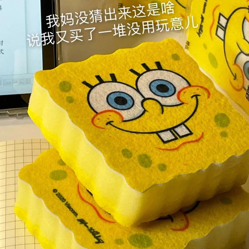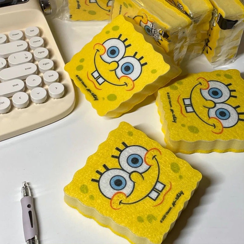 Spongebob Squarepants Dishwashing Sponge Wipe Magic Cute Cartoon Double-Sided Cleaning Brush Pot