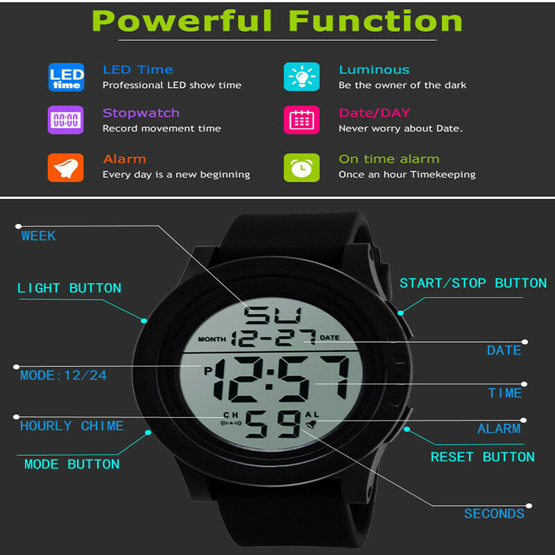 Sport Watches Unisex Simple LED Digital Watch Quartz Military Wristwatch With Calendarl