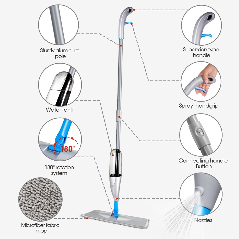Spray Mop 360 Degree Spin mop Head Flat Floor Cleaner Water mop with spinner floor Cleaning Mop